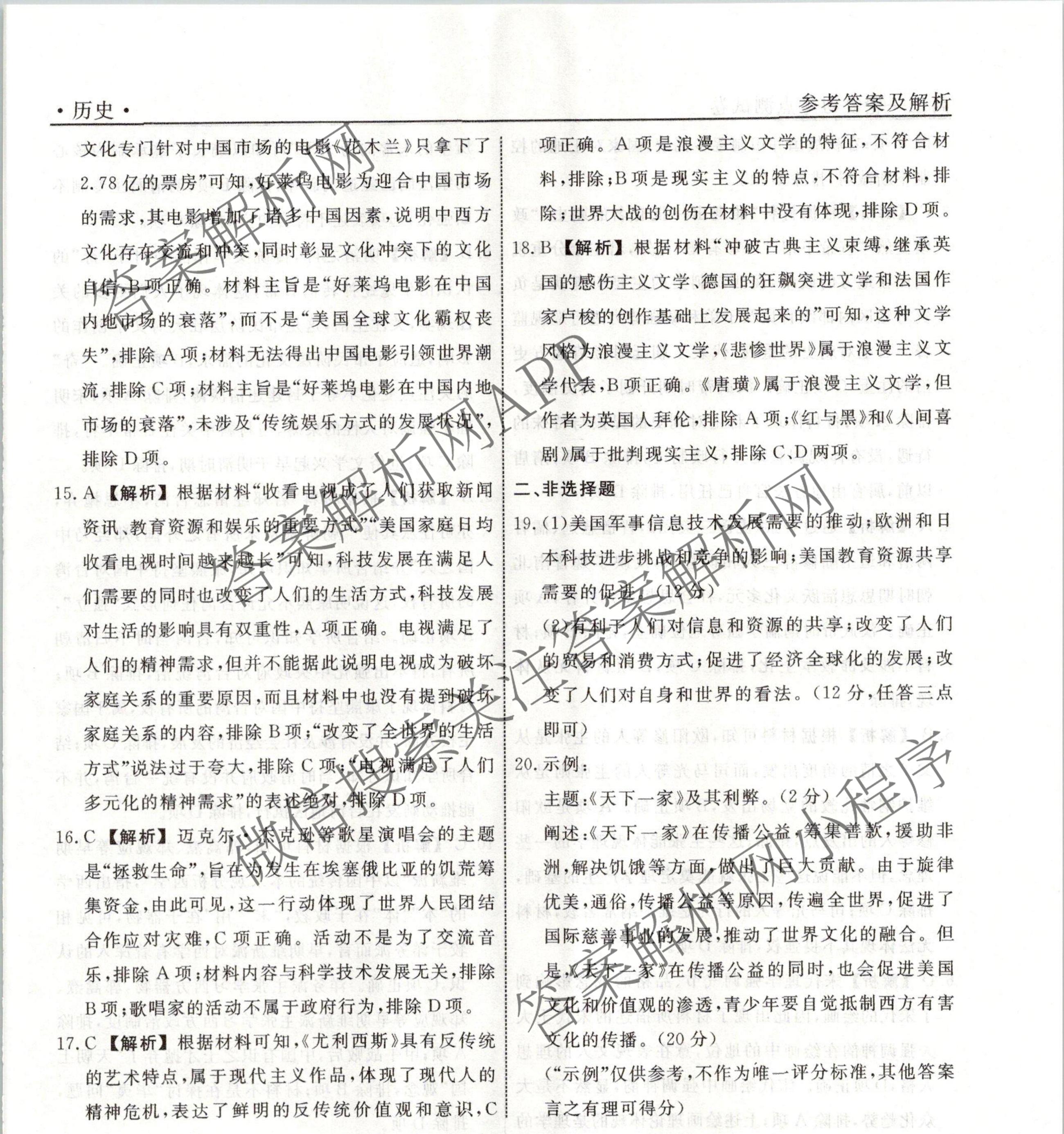衡水名师卷2023-2024学年度高三一轮复习考点测试卷历史(40分钟同心圆)(二十五)25答案