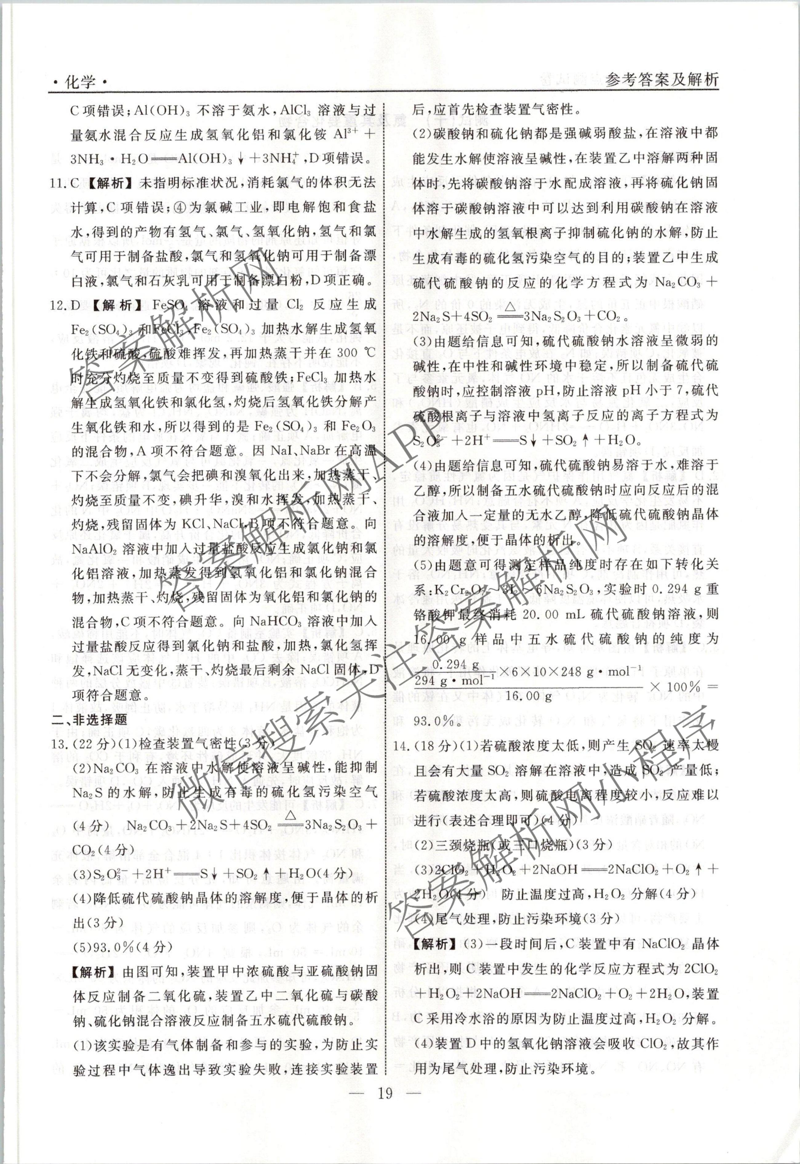 衡水名师卷2023-2024学年度高三一轮复习考点测试卷化学(40分钟空心菱形)(九)9答案