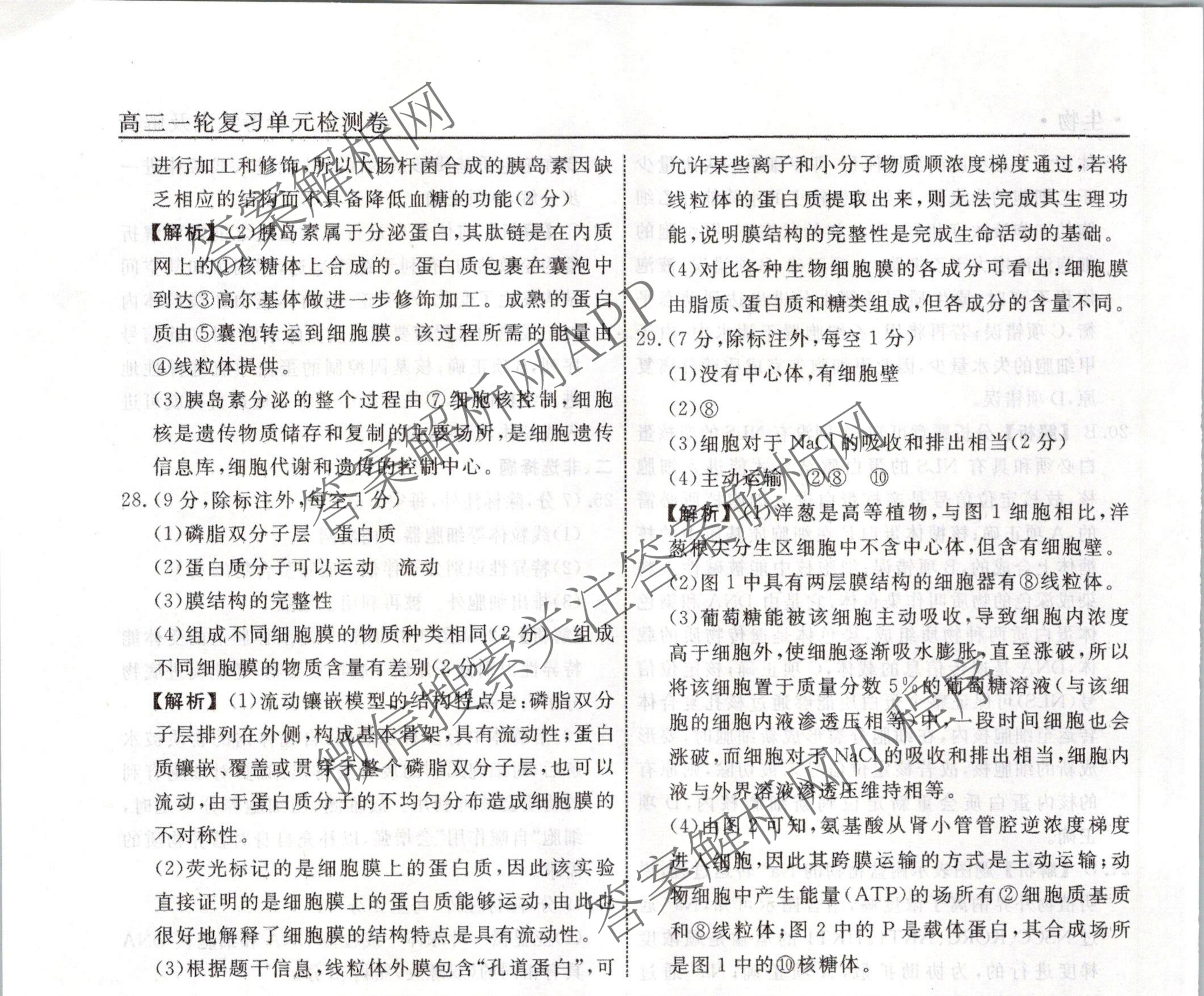 衡水名师卷2023-2024学年度高三一轮复习单元检测卷生物(空心菱形)检测(二)2答案