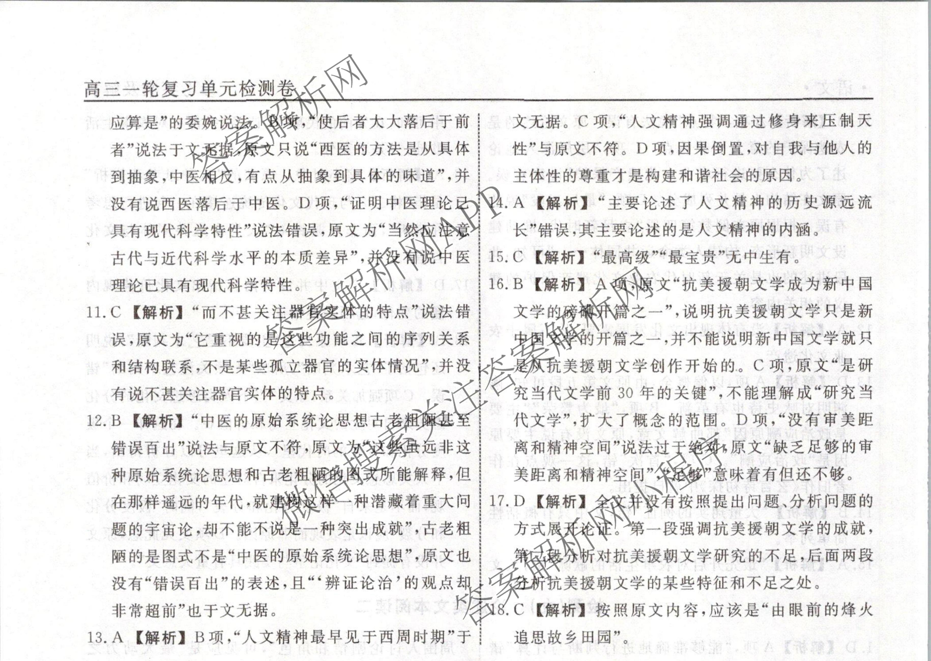 衡水名师卷2023-2024学年度高三一轮复习单元检测卷语文(空心菱形)检测(九)9答案