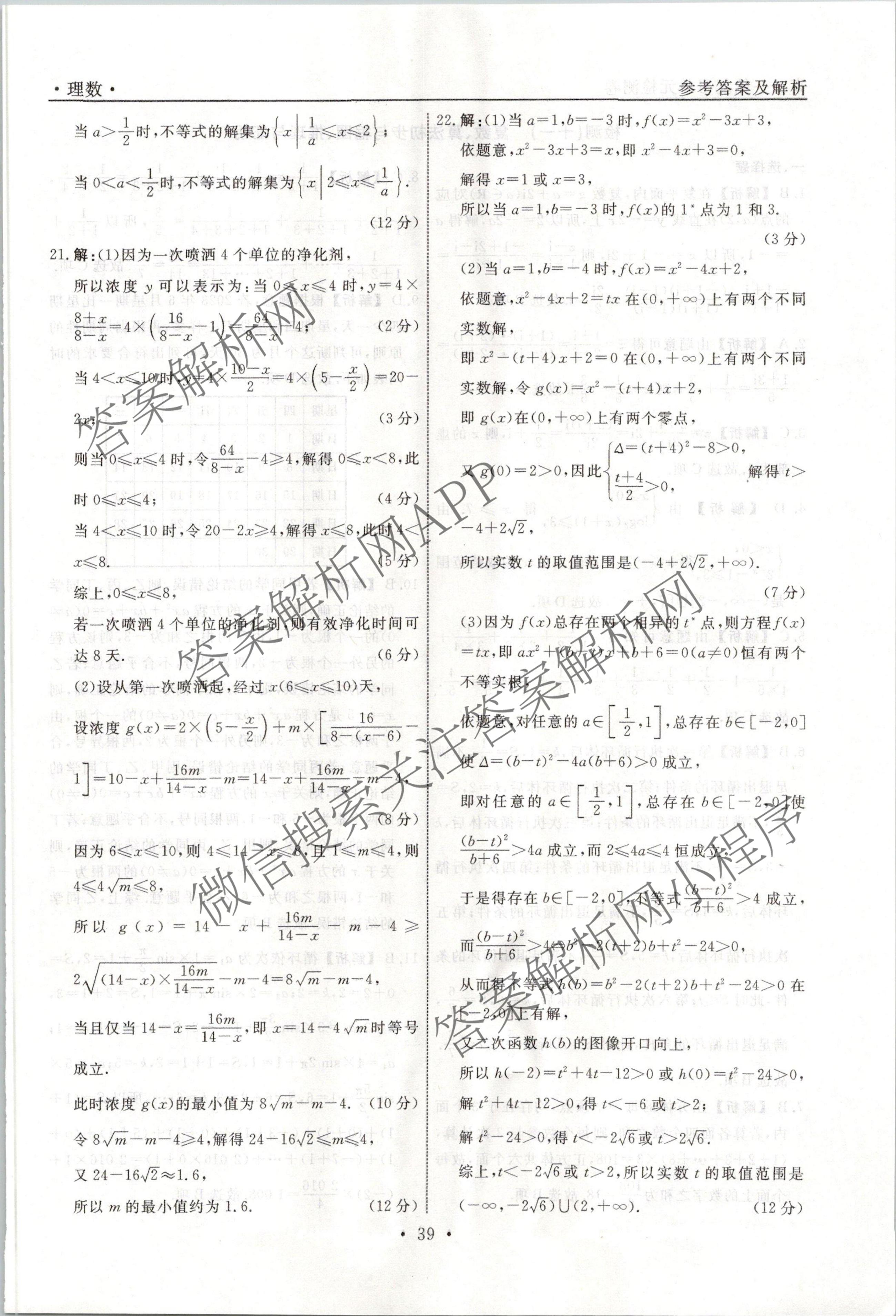 衡水名师卷2023-2024学年度高三一轮复习单元检测卷理数(空心菱形)检测(十)10答案