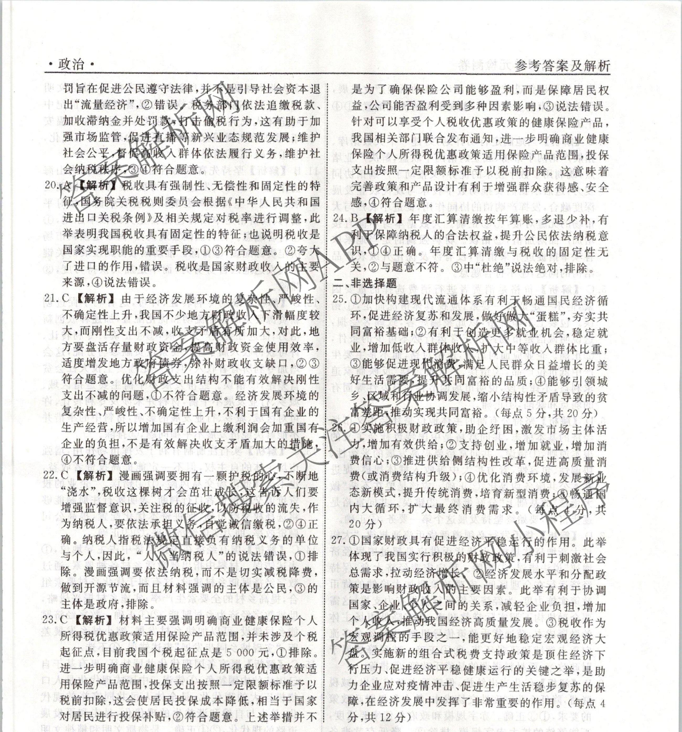 衡水名师卷2023-2024学年度高三一轮复习单元检测卷政治(空心菱形)检测(三)3答案