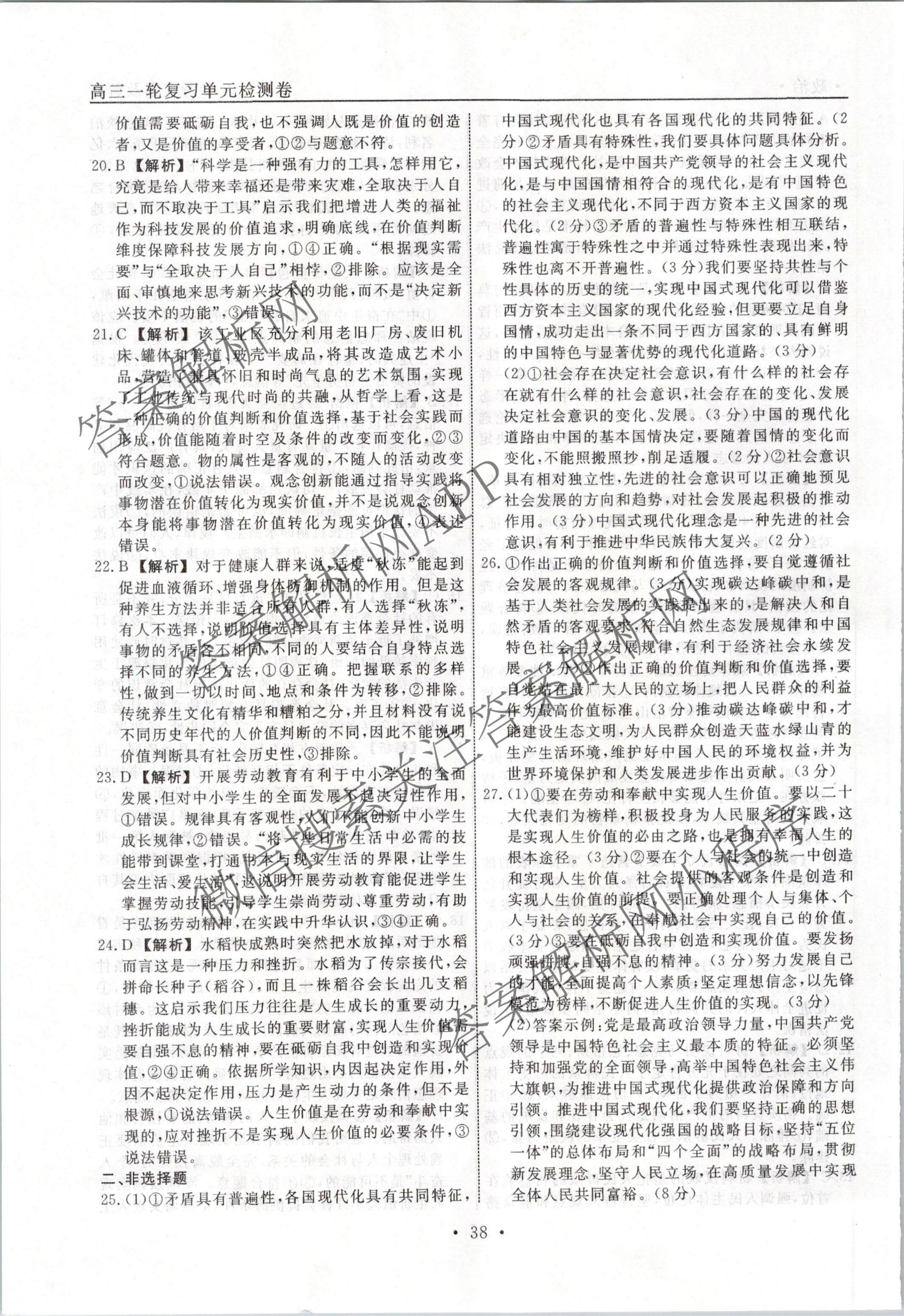 衡水名师卷2023-2024学年度高三一轮复习单元检测卷政治(空心菱形)检测(十六)16答案