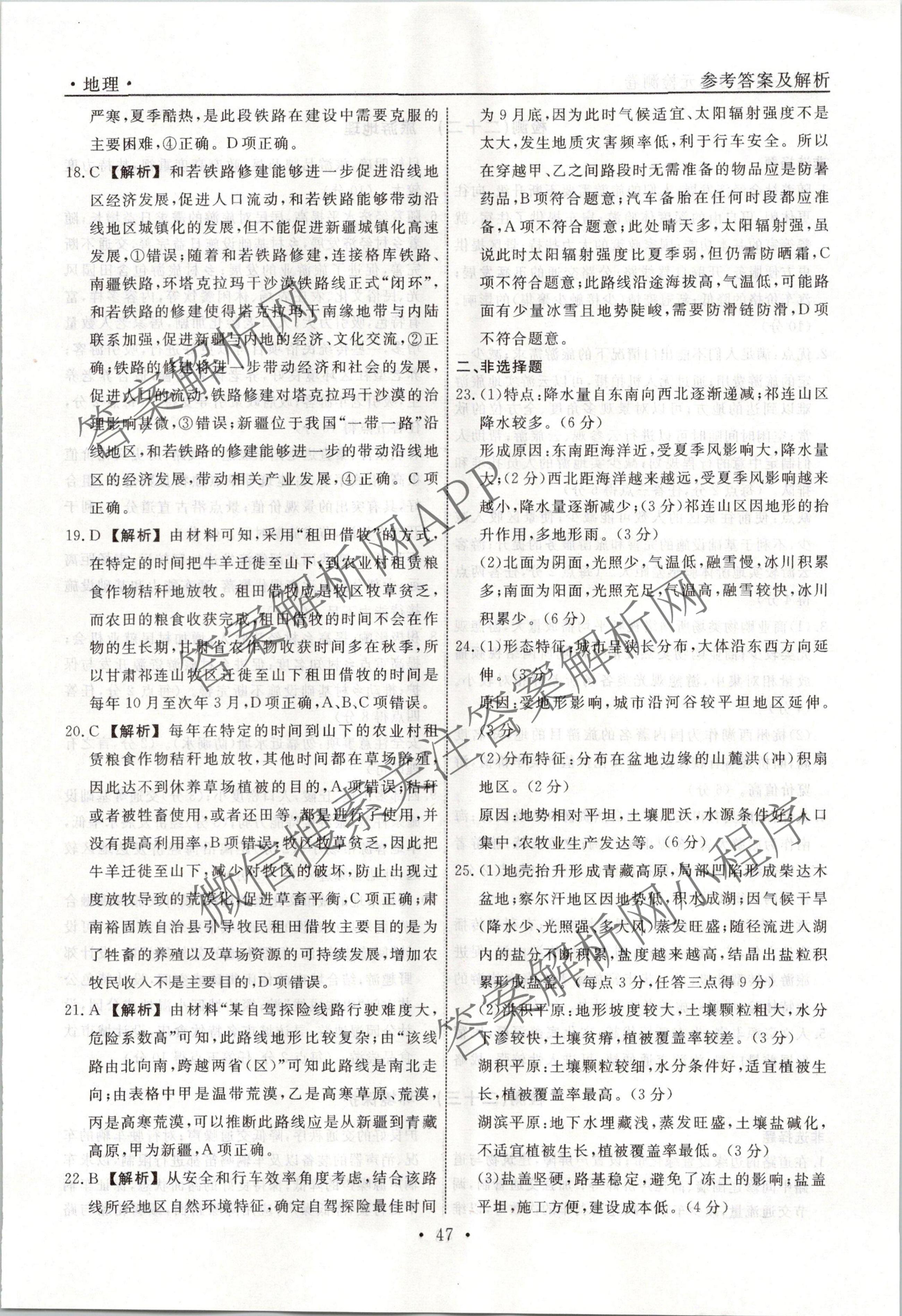 衡水名师卷2023-2024学年度高三一轮复习单元检测卷地理(空心菱形)检测(二十一)21答案