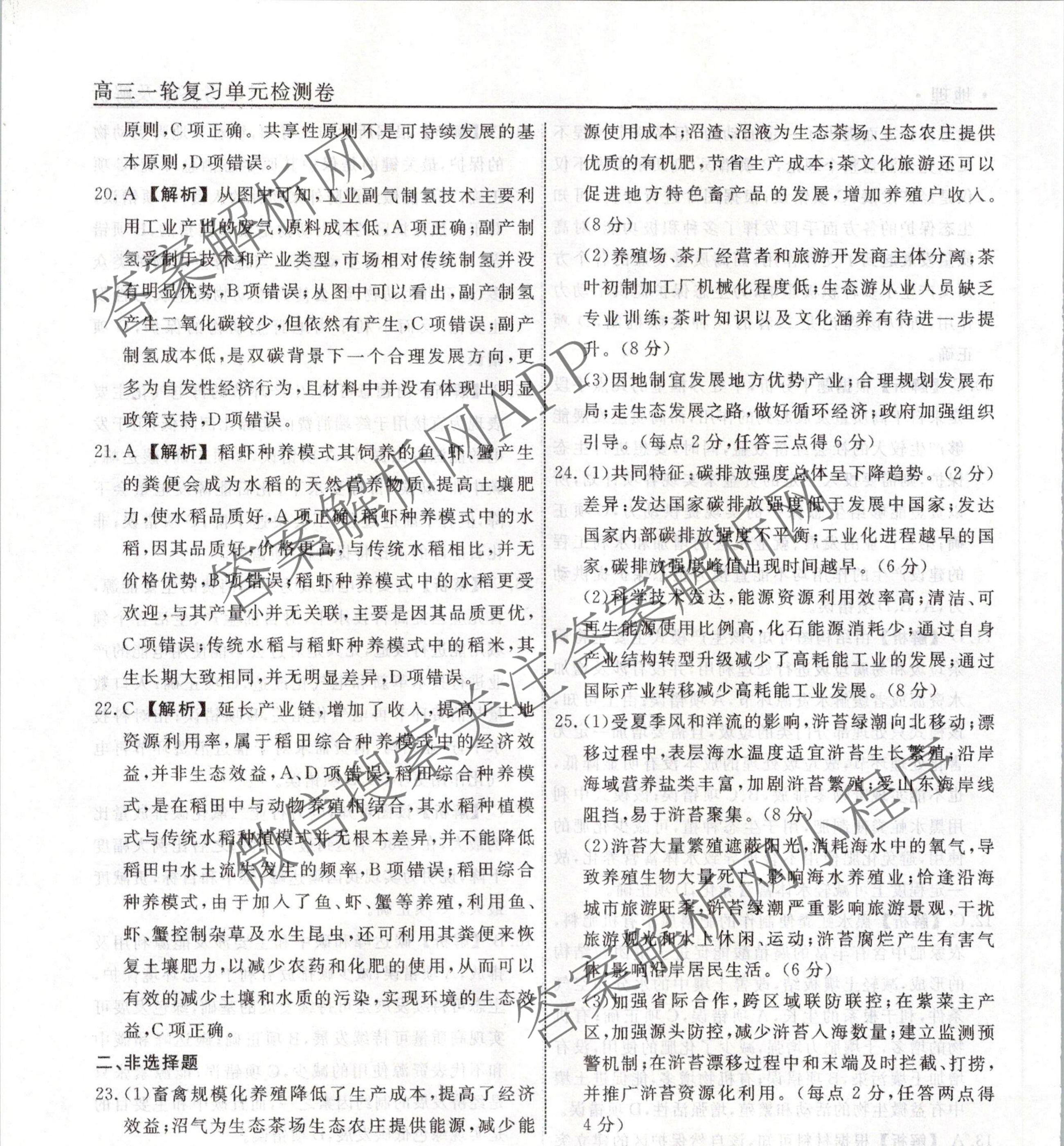 衡水名师卷2023-2024学年度高三一轮复习单元检测卷地理(空心菱形)检测(十二)12答案
