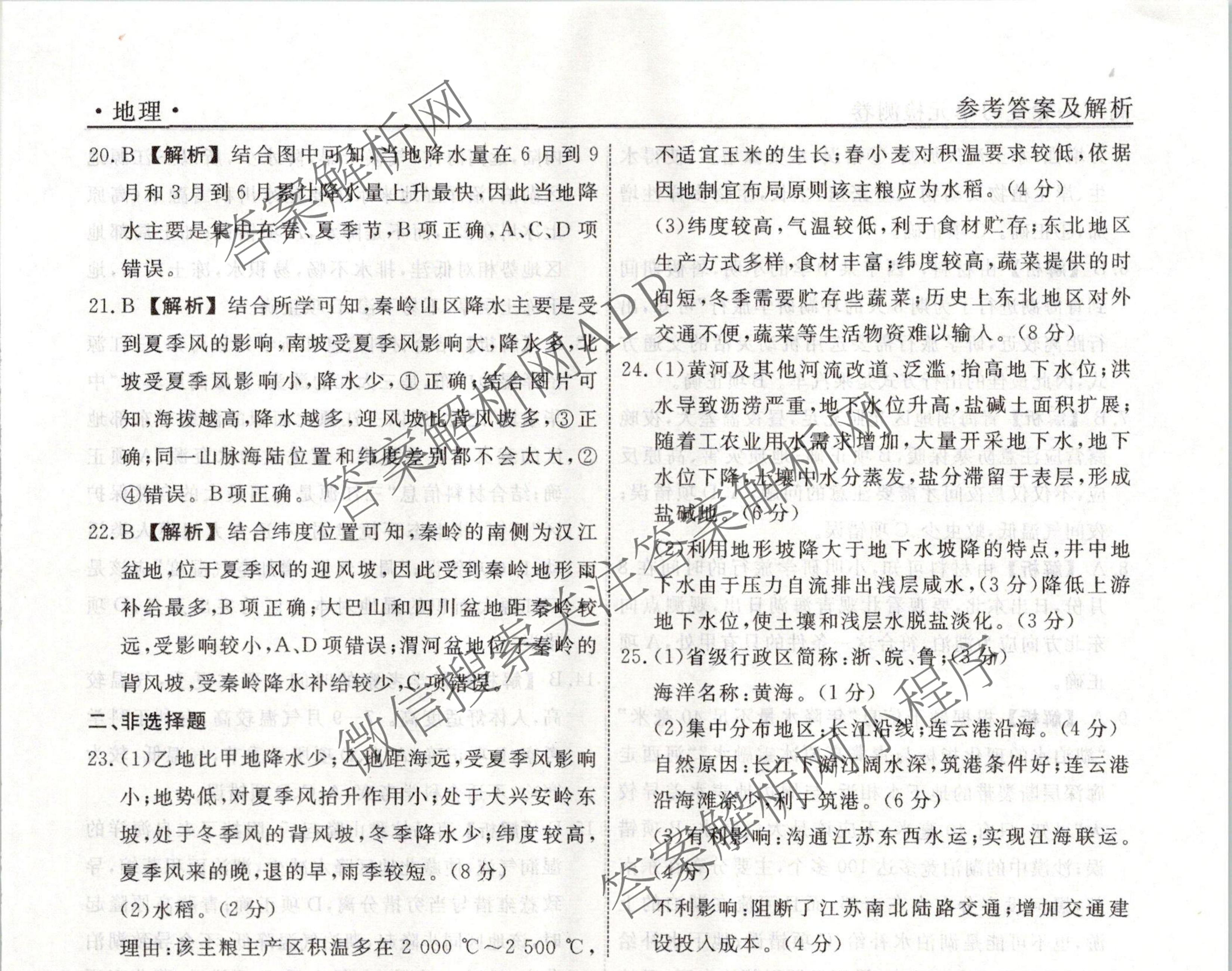 衡水名师卷2023-2024学年度高三一轮复习单元检测卷地理(空心菱形)检测(二十)20答案
