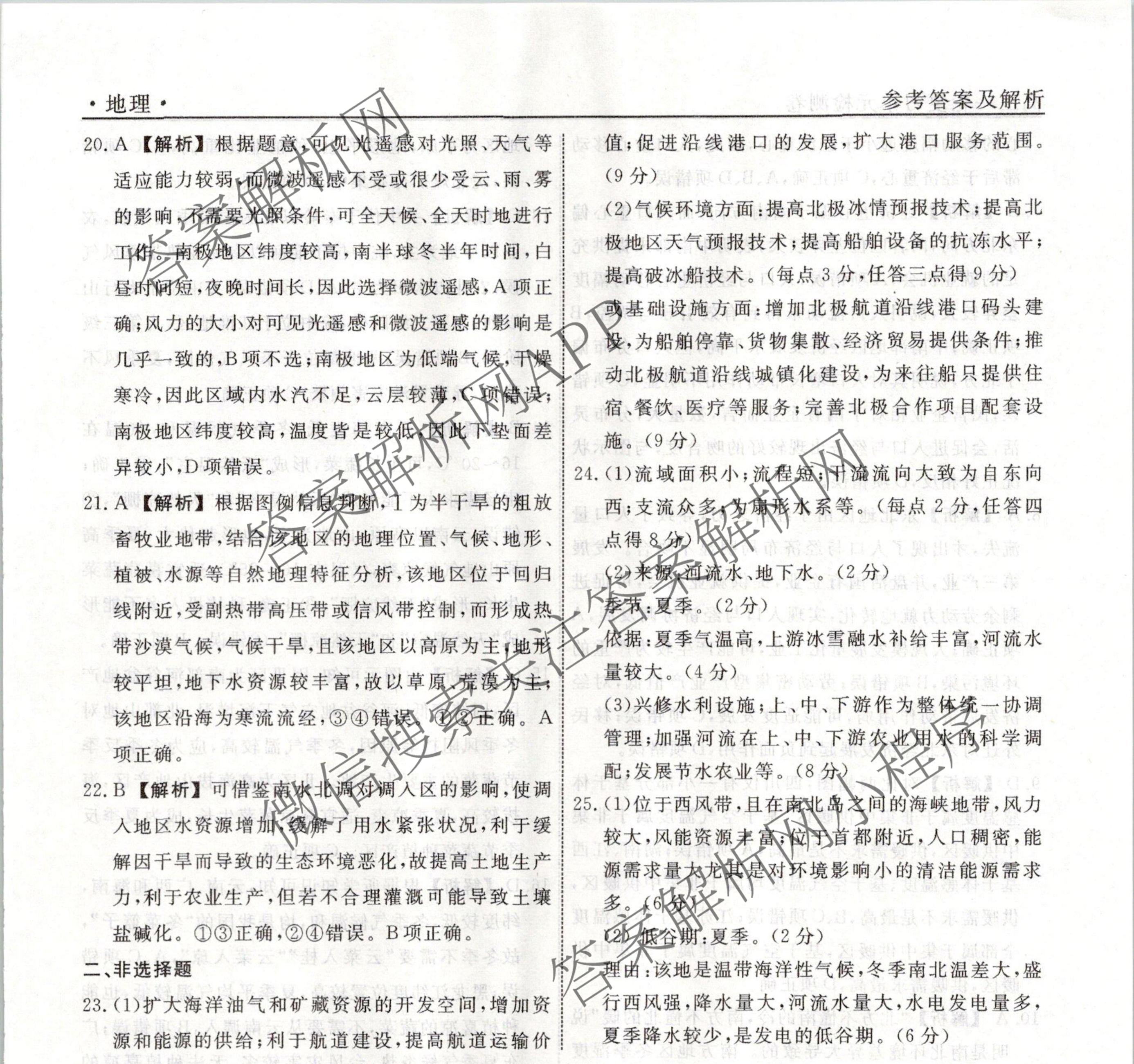 衡水名师卷2023-2024学年度高三一轮复习单元检测卷地理(空心菱形)检测(十九)19答案