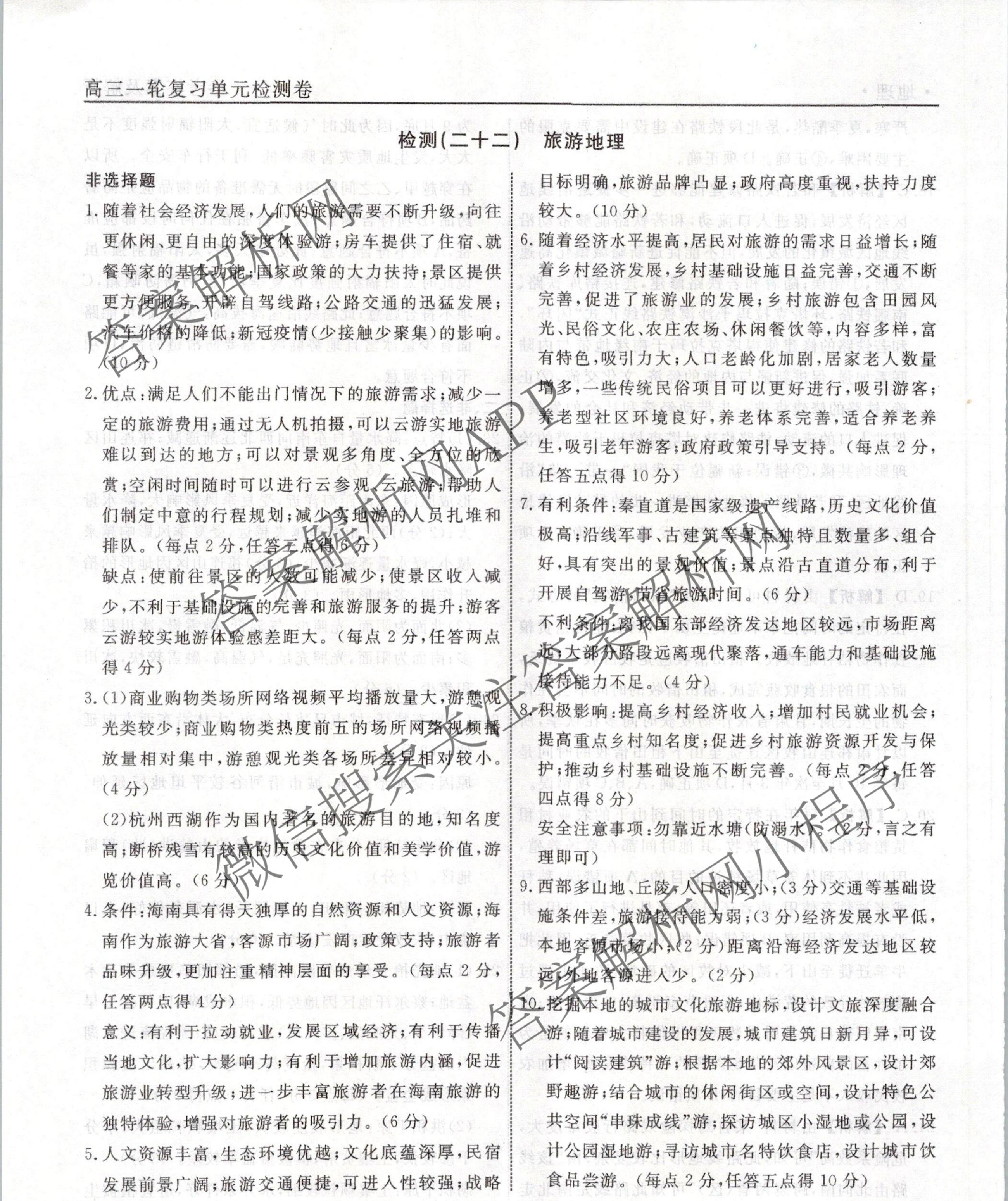 衡水名师卷2023-2024学年度高三一轮复习单元检测卷地理(空心菱形)检测(二十二)22答案