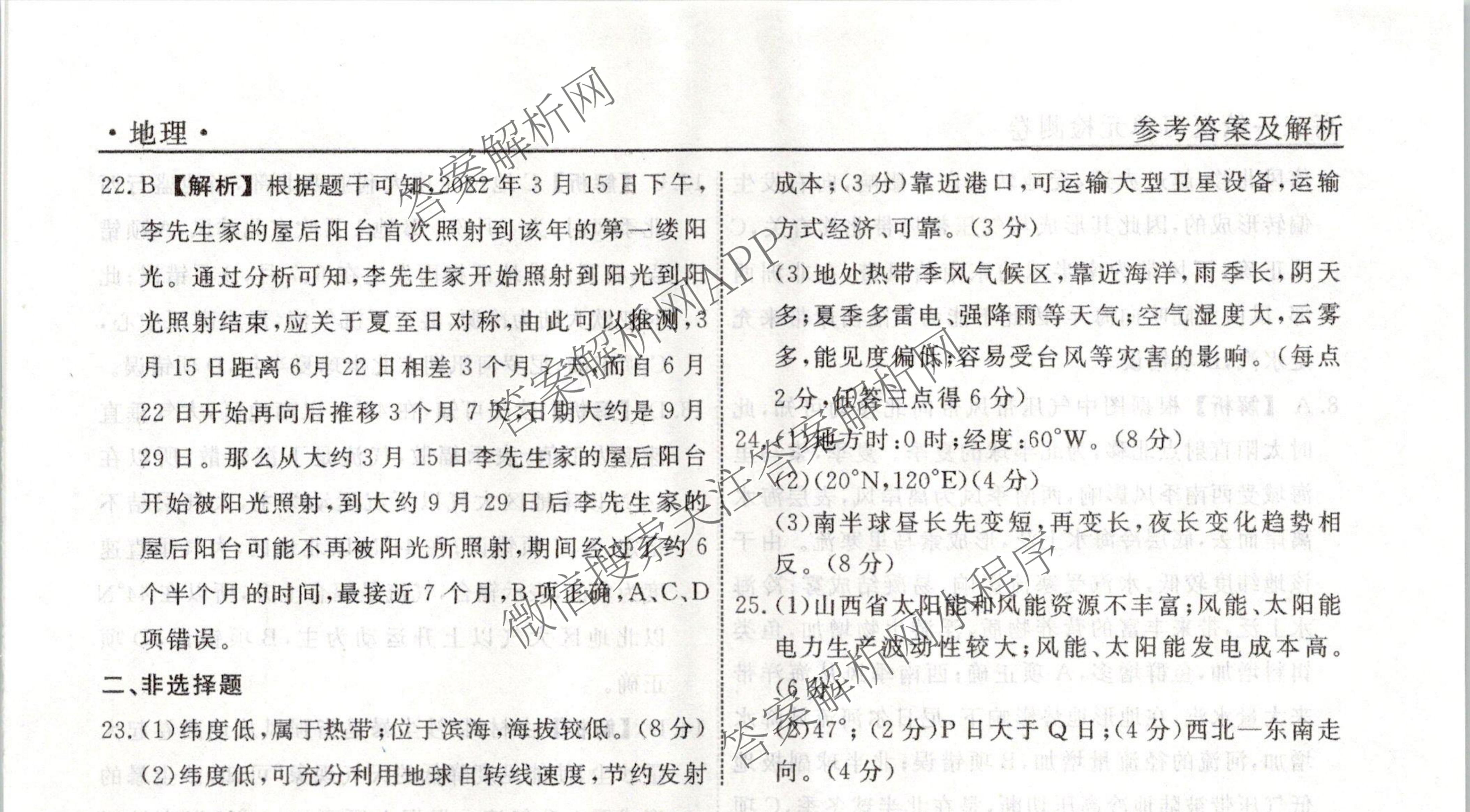 衡水名师卷2023-2024学年度高三一轮复习单元检测卷地理(空心菱形)检测(二)2答案