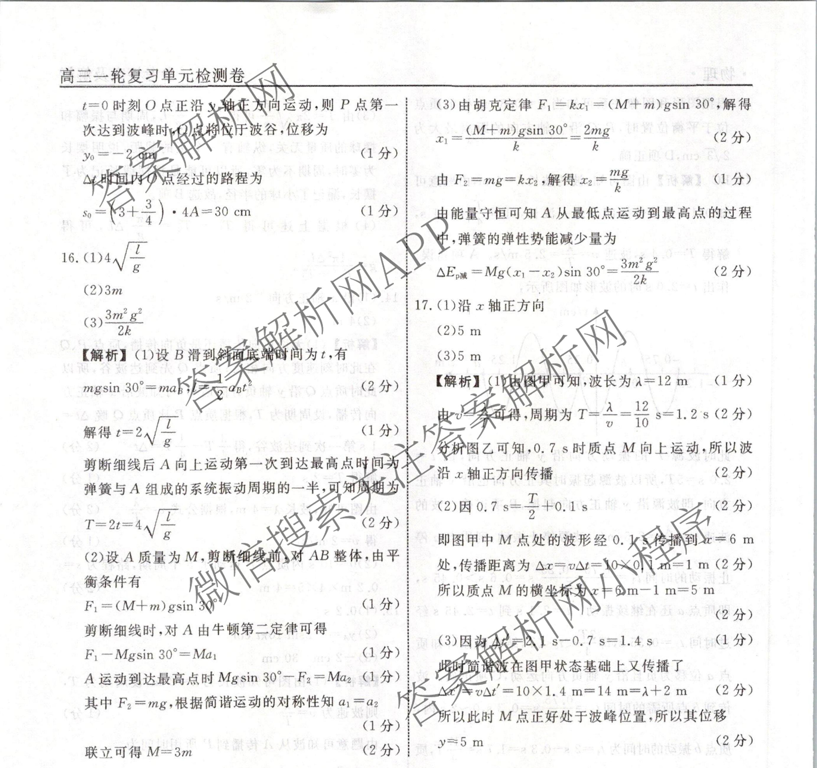 衡水名师卷2023-2024学年度高三一轮复习单元检测卷物理(空心菱形)检测(十九)19答案