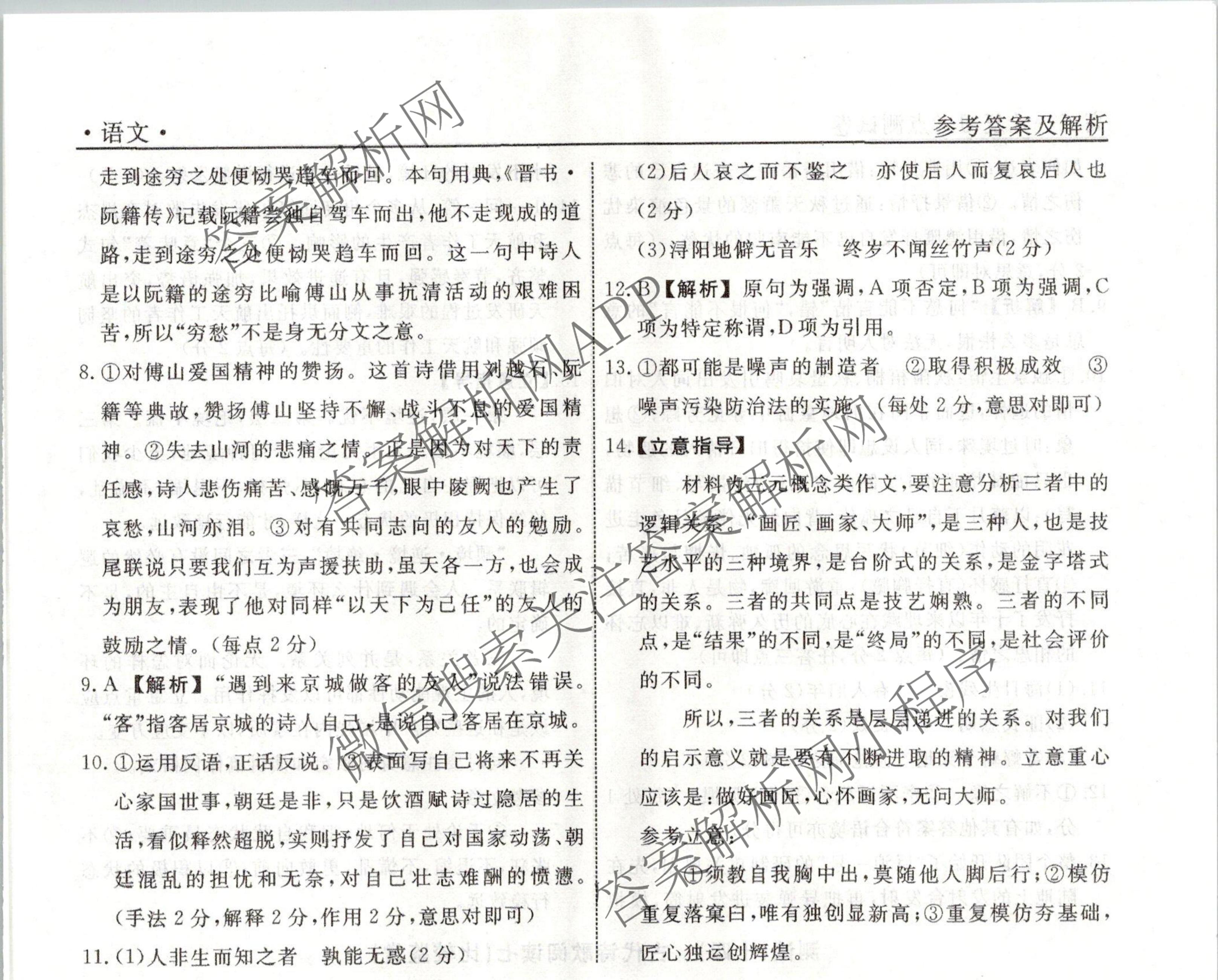衡水名师卷2023-2024学年度高三一轮复习考点测试卷语文(40分钟空心菱形)(十二)12答案