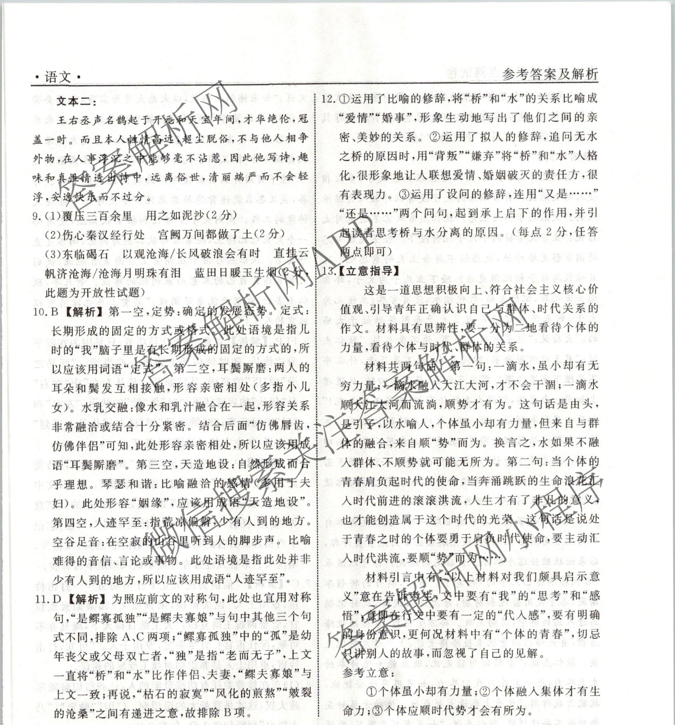 衡水名师卷2023-2024学年度高三一轮复习考点测试卷语文(40分钟空心菱形)(五)5答案