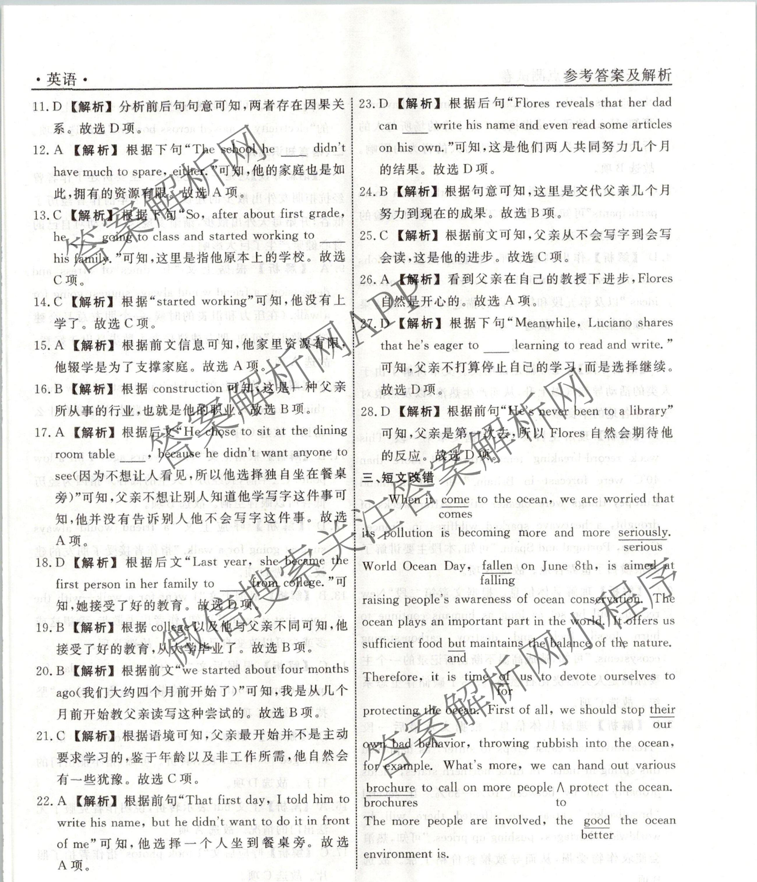 衡水名师卷2023-2024学年度高三一轮复习考点测试卷英语(40分钟空心菱形)(十八)18答案