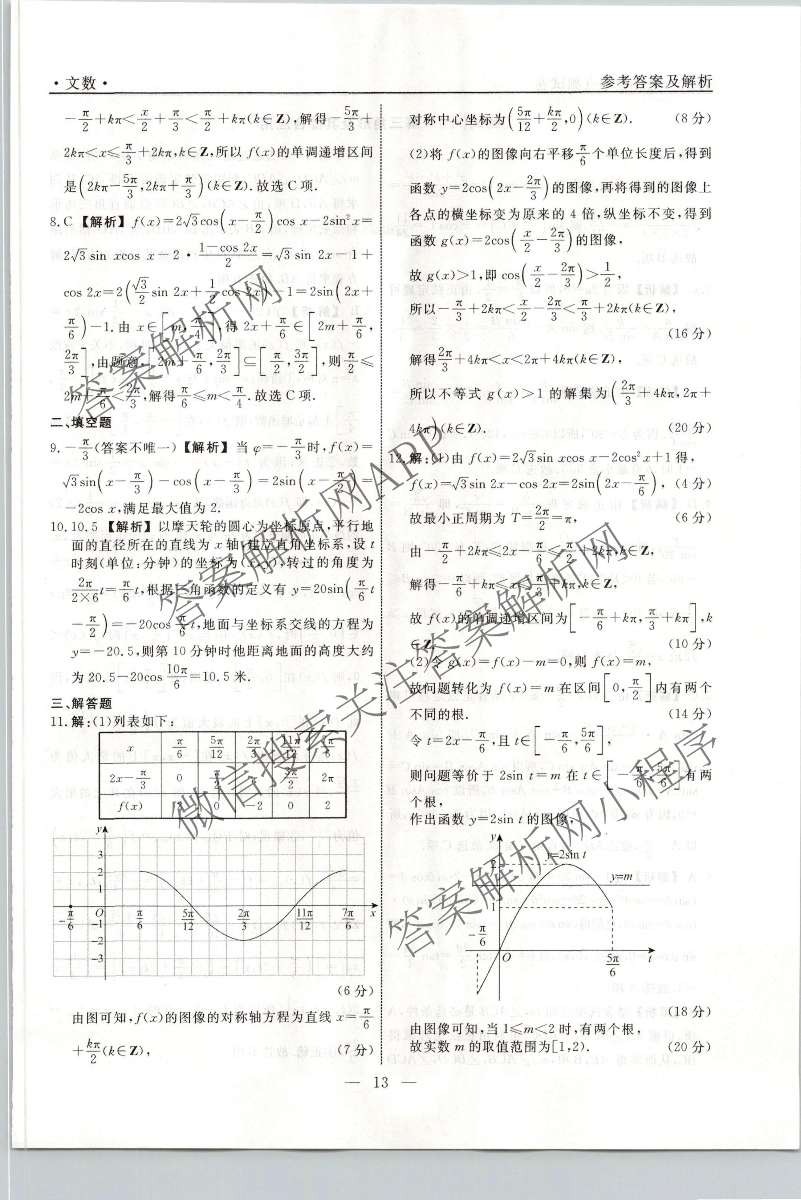 衡水名师卷2023-2024学年度高三一轮复习考点测试卷文数(40分钟空心菱形)(九)9答案