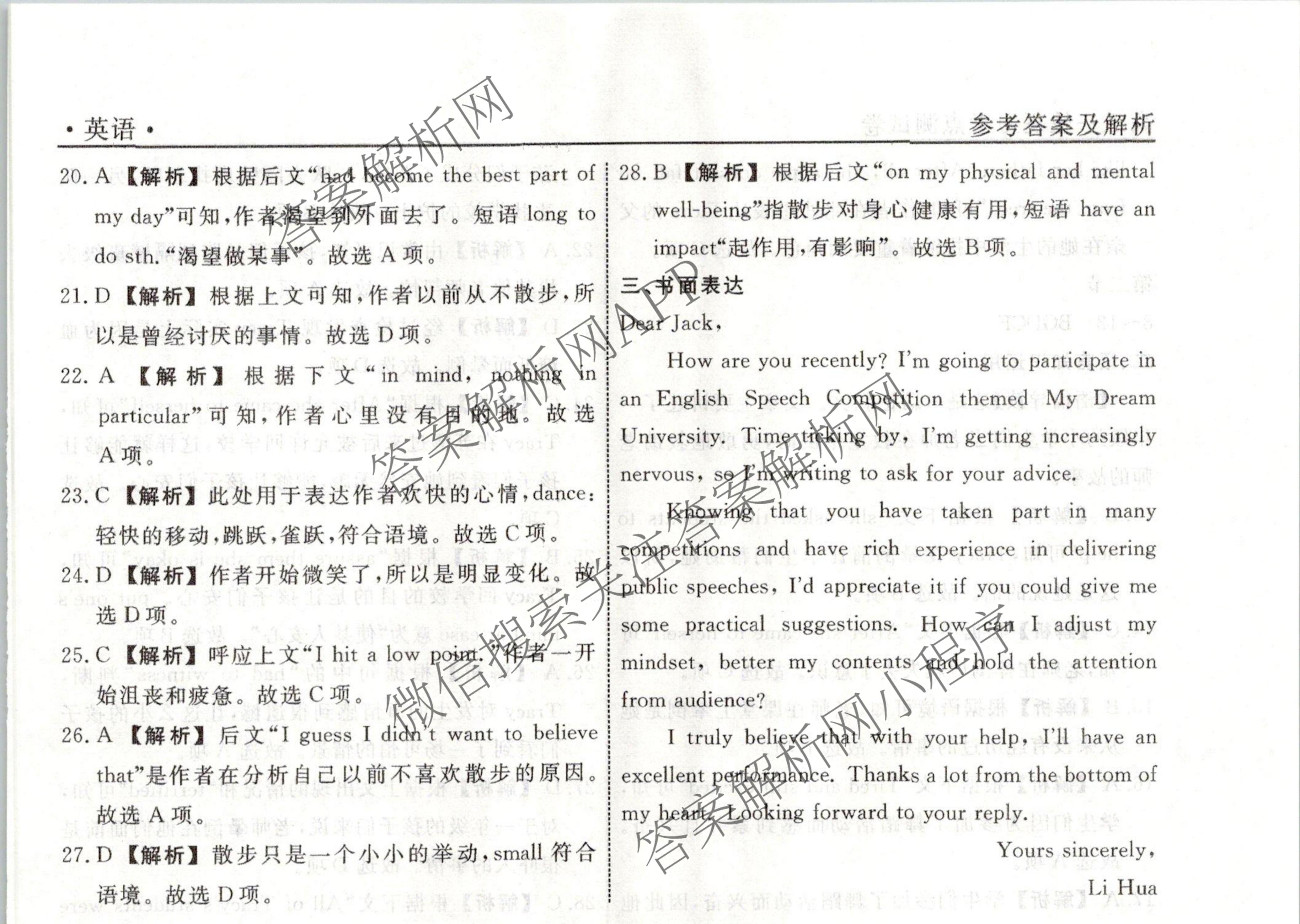 衡水名师卷2023-2024学年度高三一轮复习考点测试卷英语(40分钟空心菱形)(十九)19答案