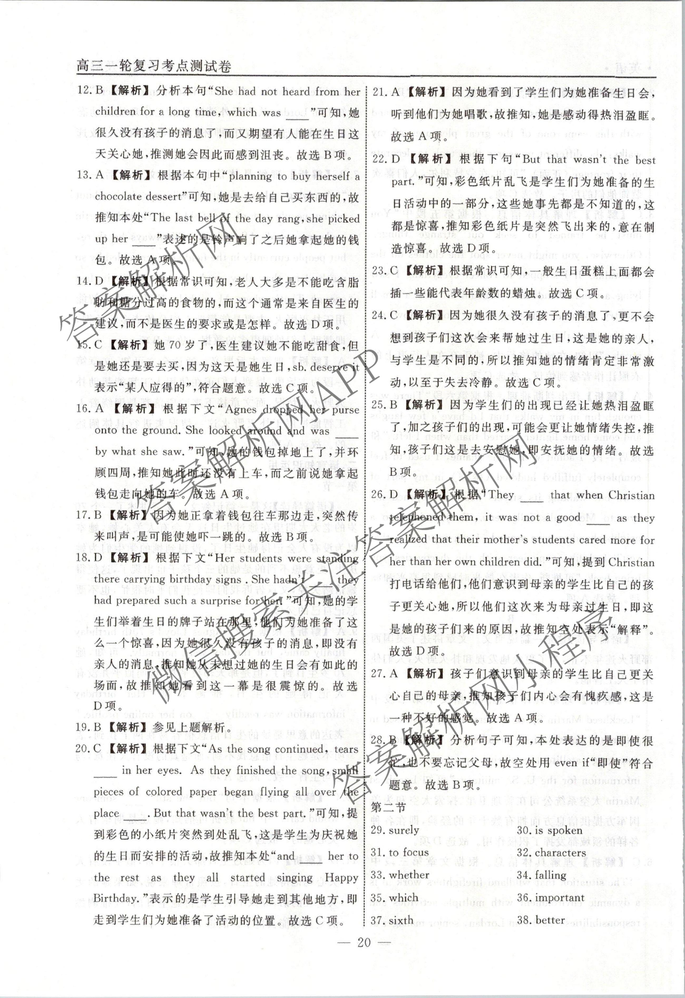 衡水名师卷2023-2024学年度高三一轮复习考点测试卷英语(40分钟空心菱形)(二十一)21答案