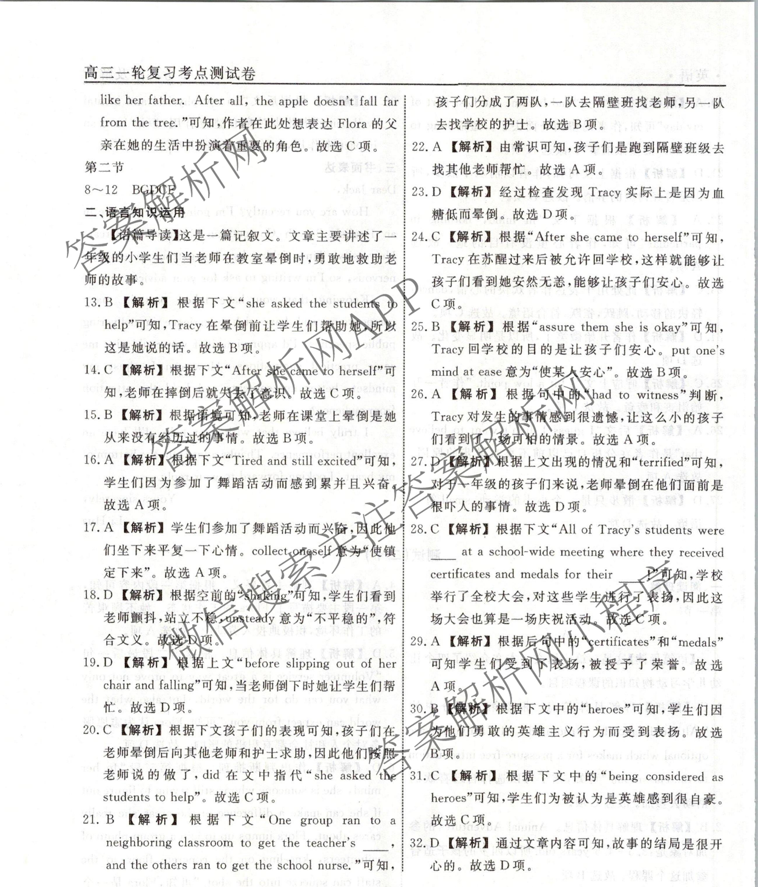 衡水名师卷2023-2024学年度高三一轮复习考点测试卷英语(40分钟空心菱形)(二十)20答案