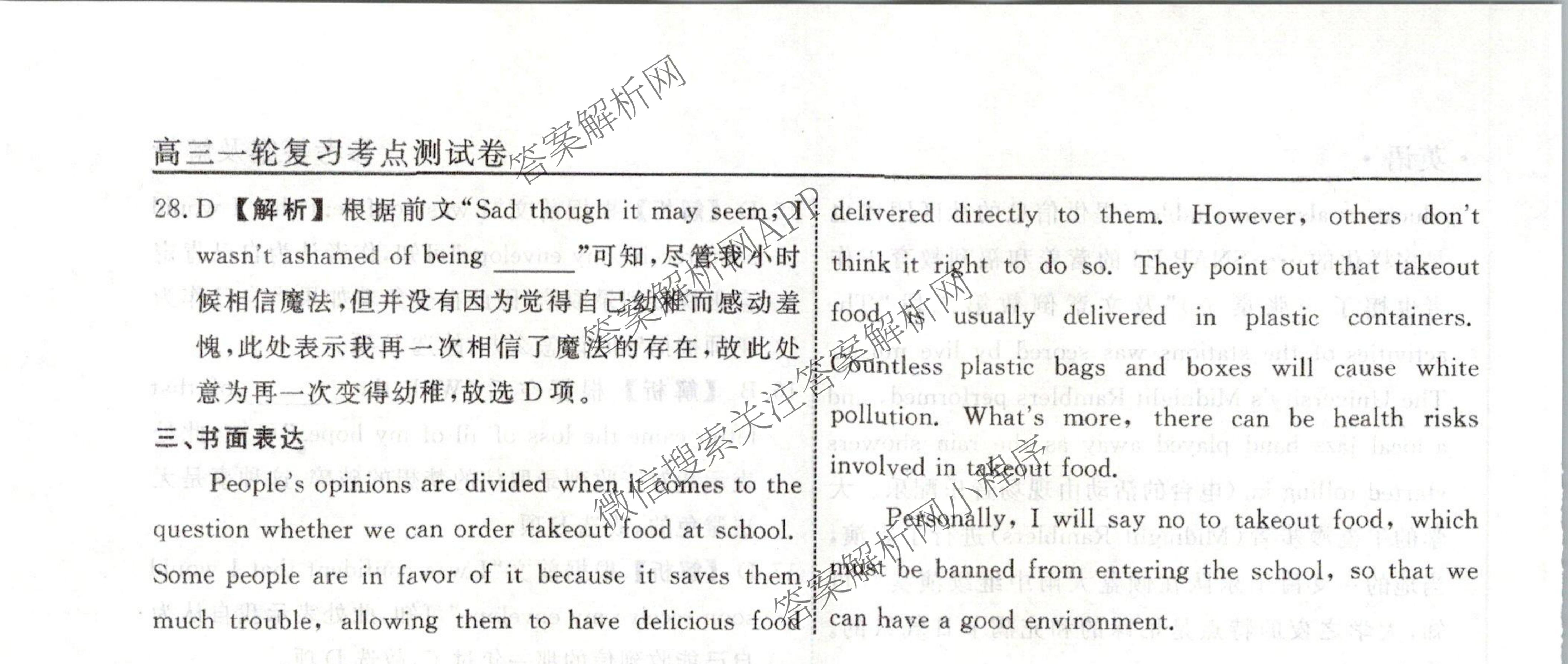 衡水名师卷2023-2024学年度高三一轮复习考点测试卷英语(40分钟空心菱形)(二十九)29答案