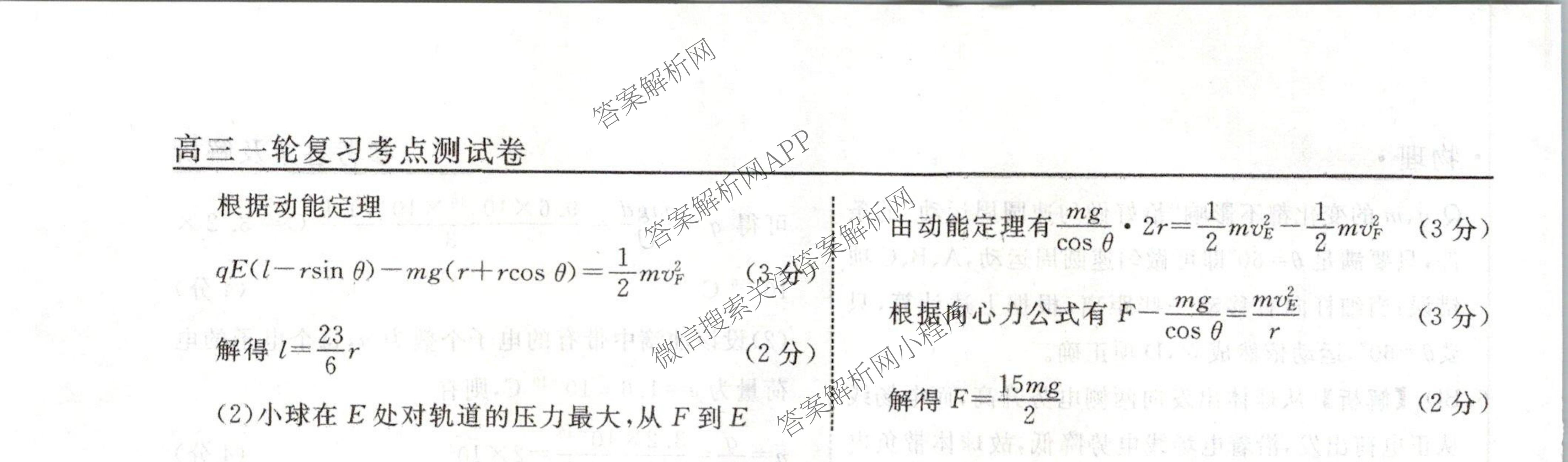 衡水名师卷2023-2024学年度高三一轮复习考点测试卷物理(40分钟空心菱形)(十六)16答案
