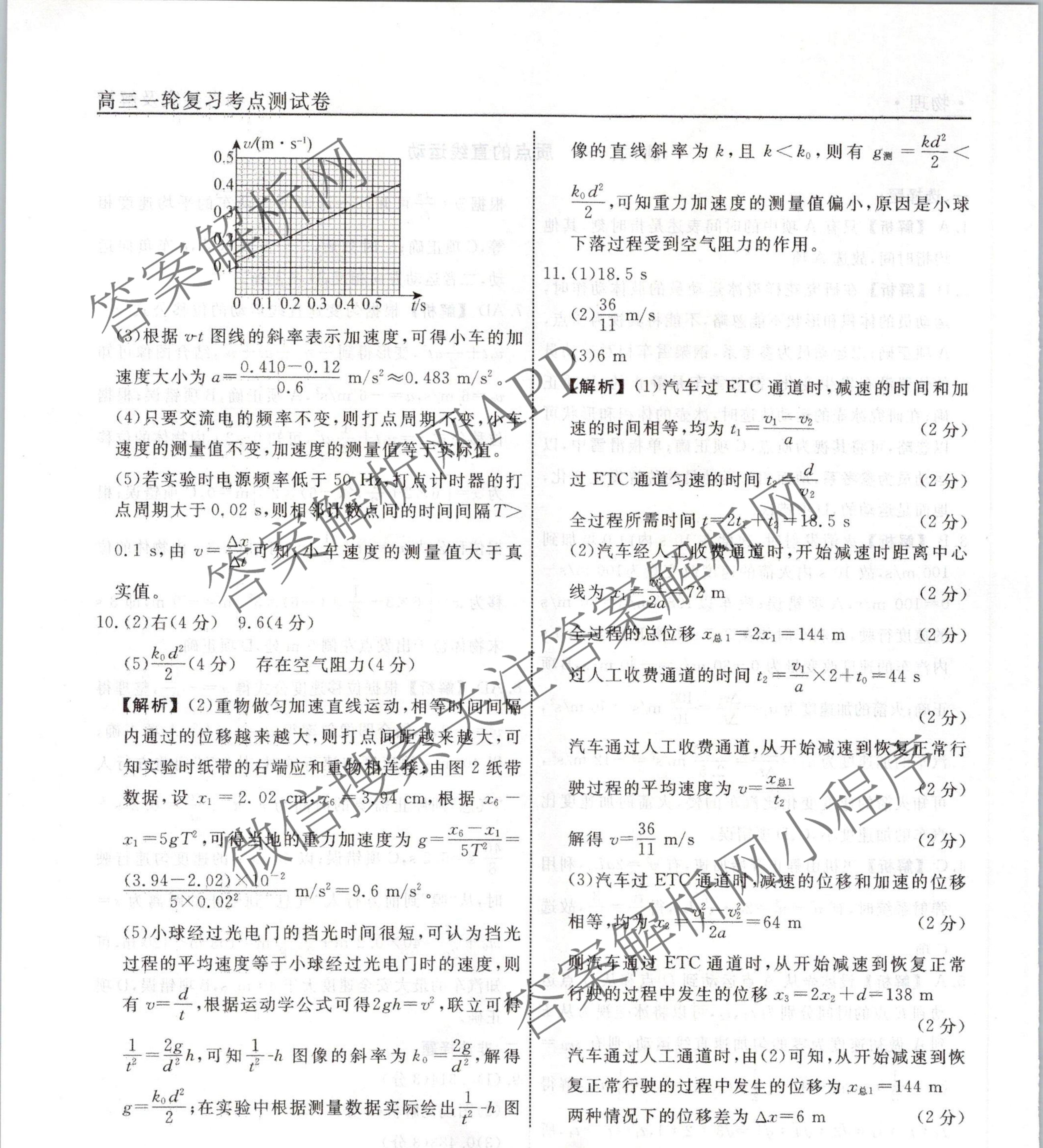 衡水名师卷2023-2024学年度高三一轮复习考点测试卷物理(40分钟空心菱形)(一)1答案
