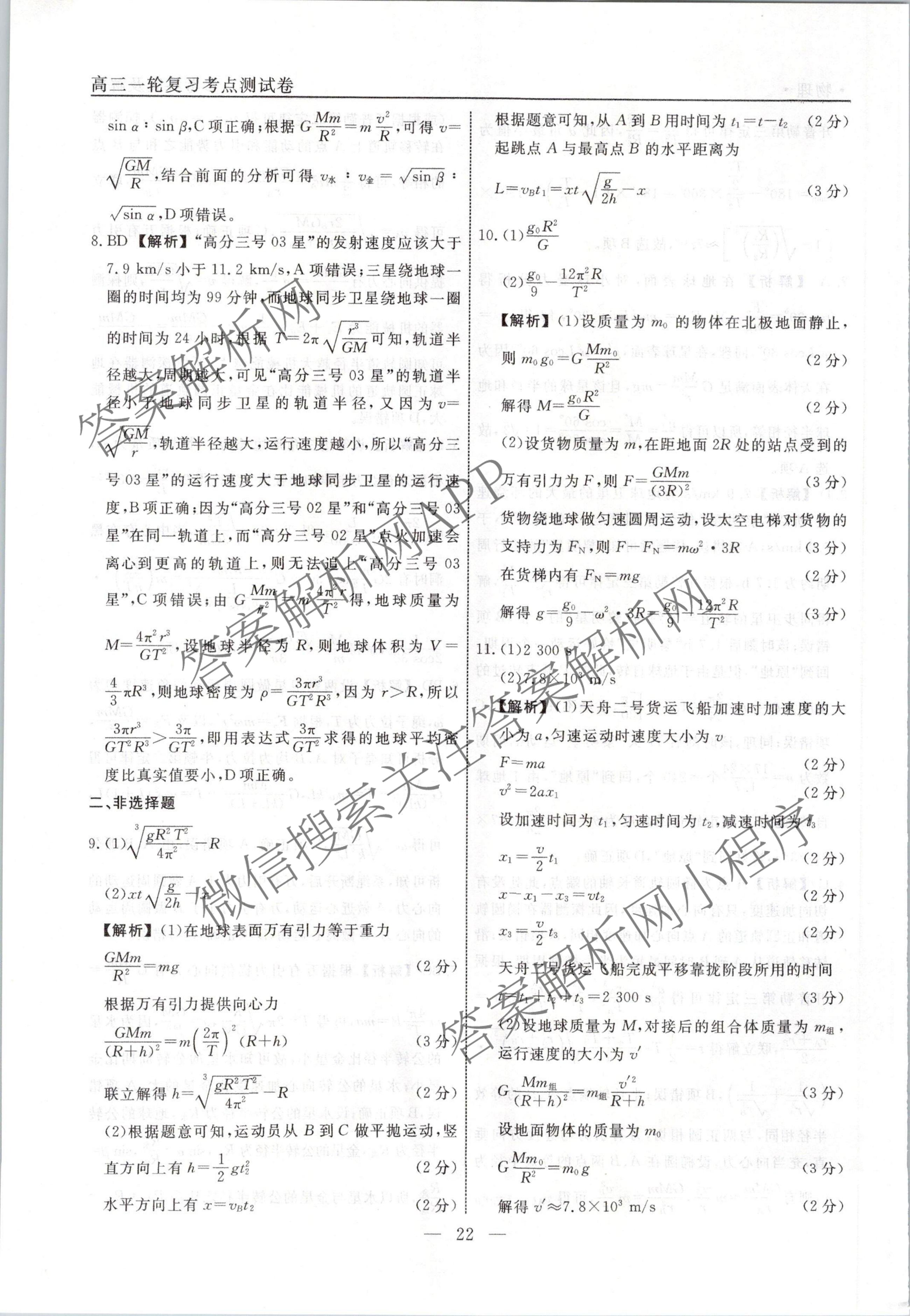 衡水名师卷2023-2024学年度高三一轮复习考点测试卷物理(40分钟空心菱形)(十)10答案