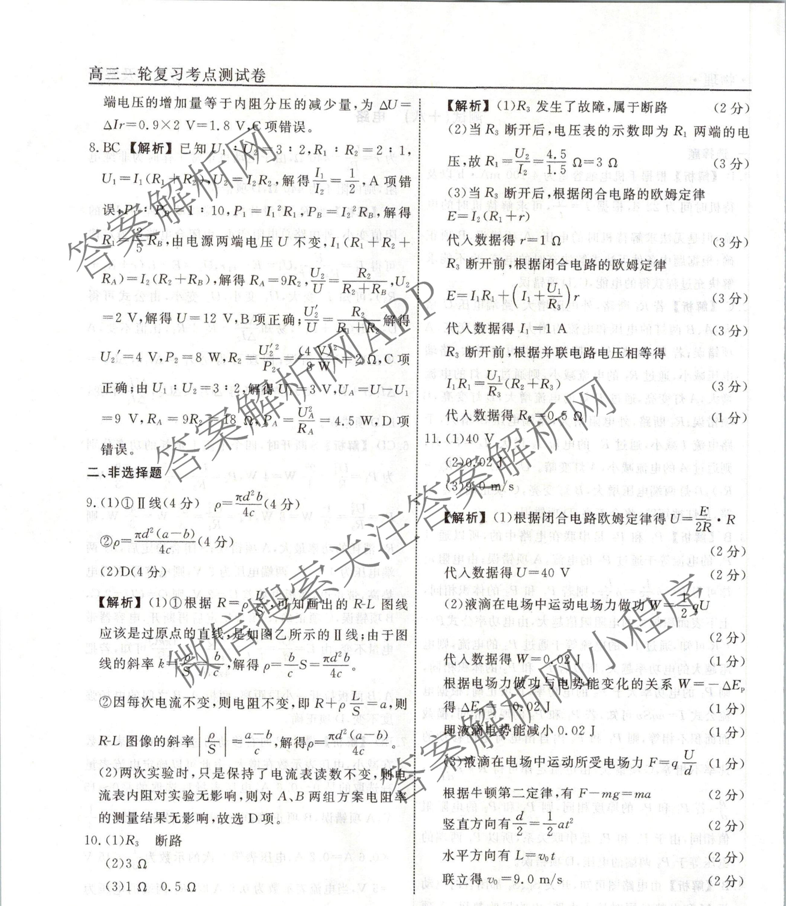 衡水名师卷2023-2024学年度高三一轮复习考点测试卷物理(40分钟空心菱形)(十八)18答案