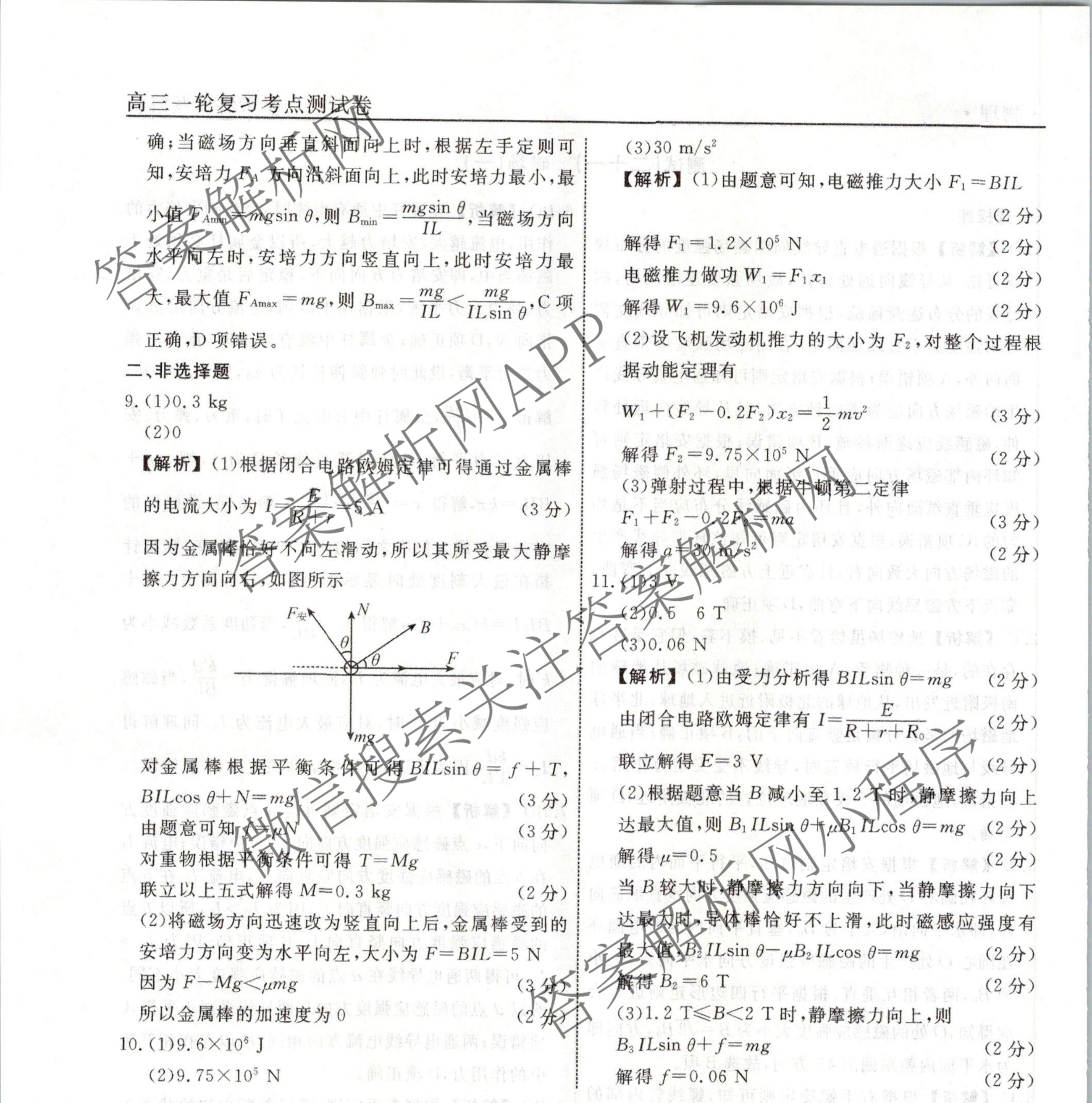 衡水名师卷2023-2024学年度高三一轮复习考点测试卷物理(40分钟空心菱形)(二十一)21答案