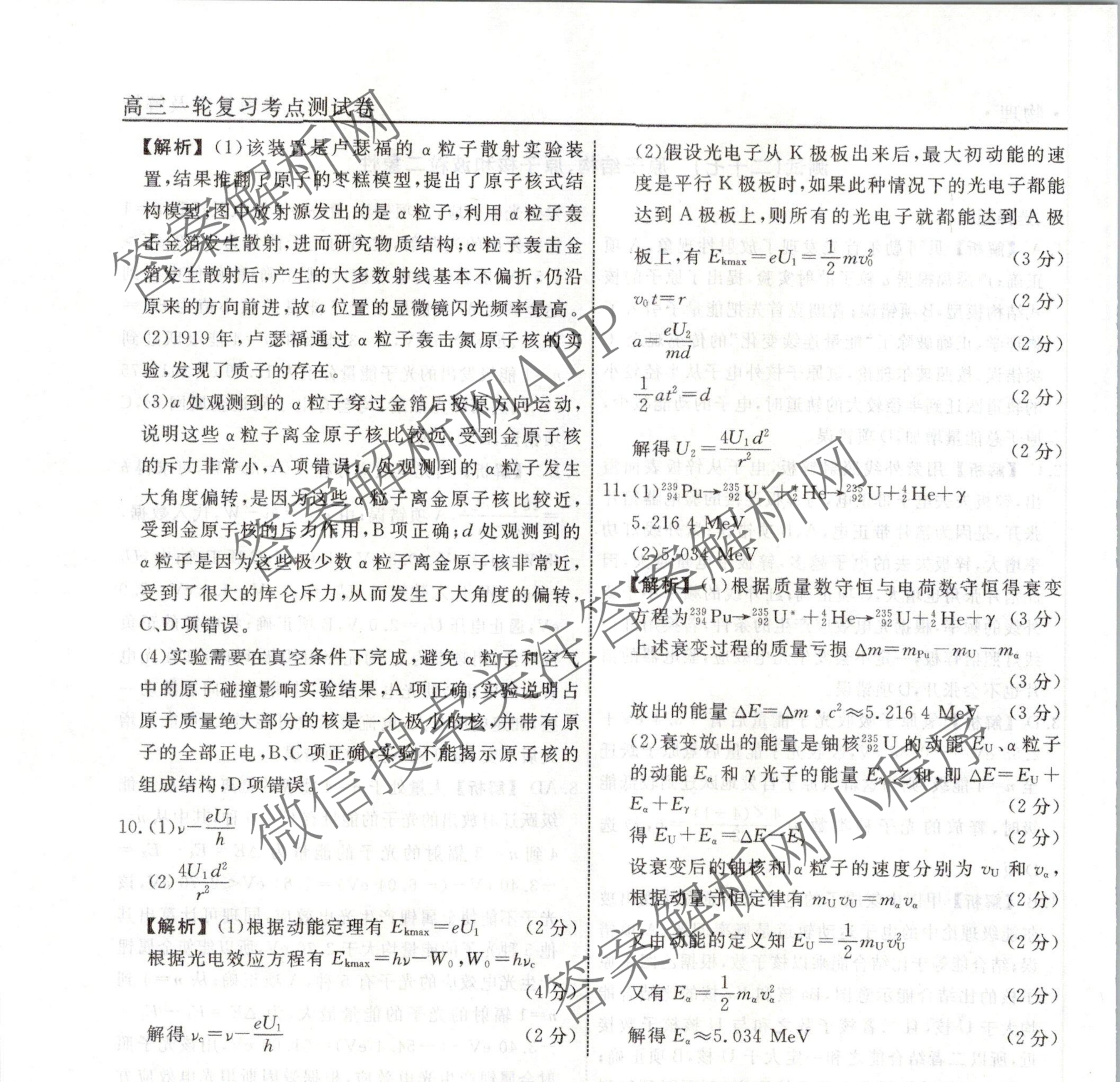 衡水名师卷2023-2024学年度高三一轮复习考点测试卷物理(40分钟空心菱形)(二十七)27答案