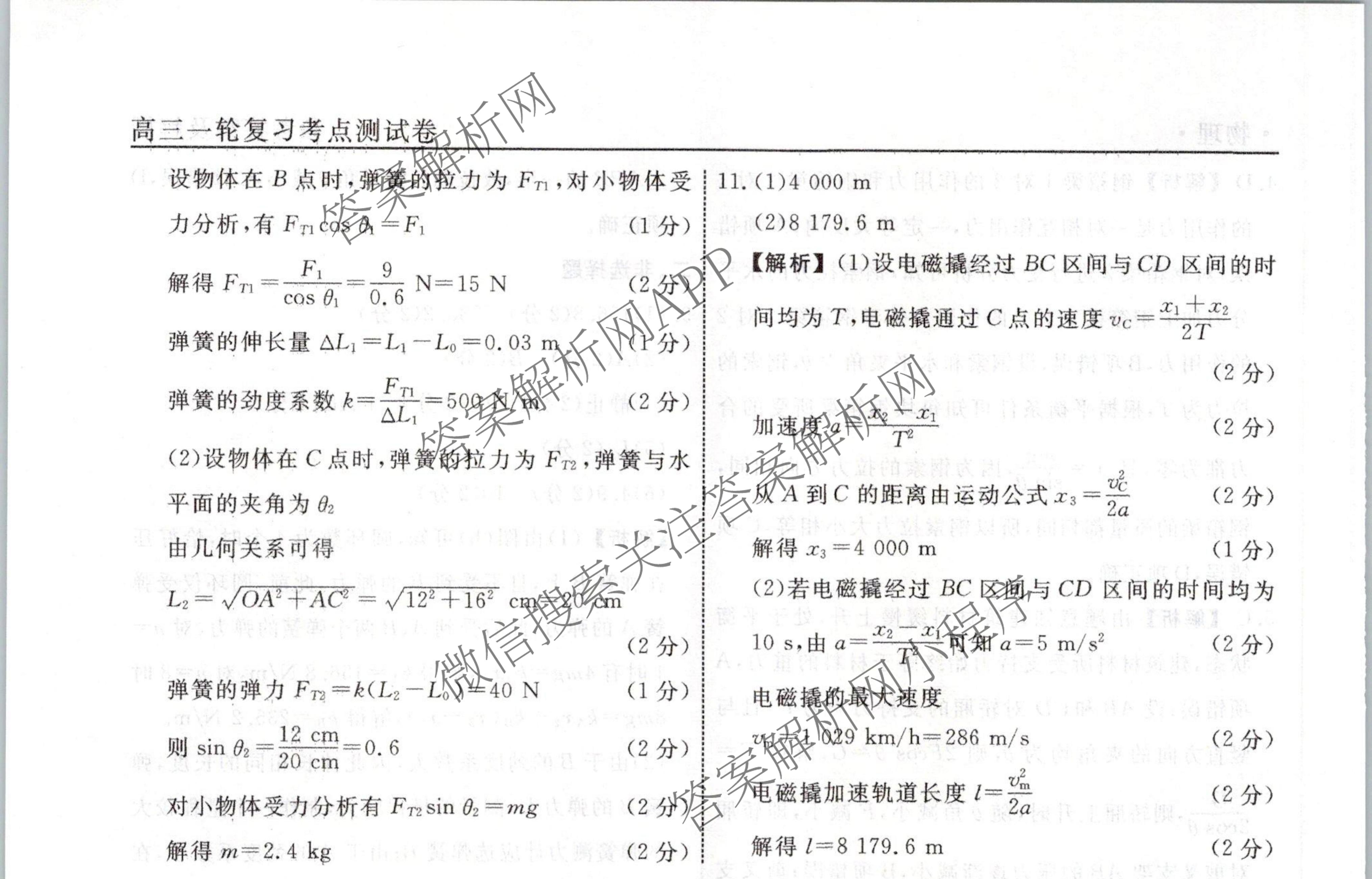 衡水名师卷2023-2024学年度高三一轮复习考点测试卷物理(40分钟空心菱形)(三)3答案