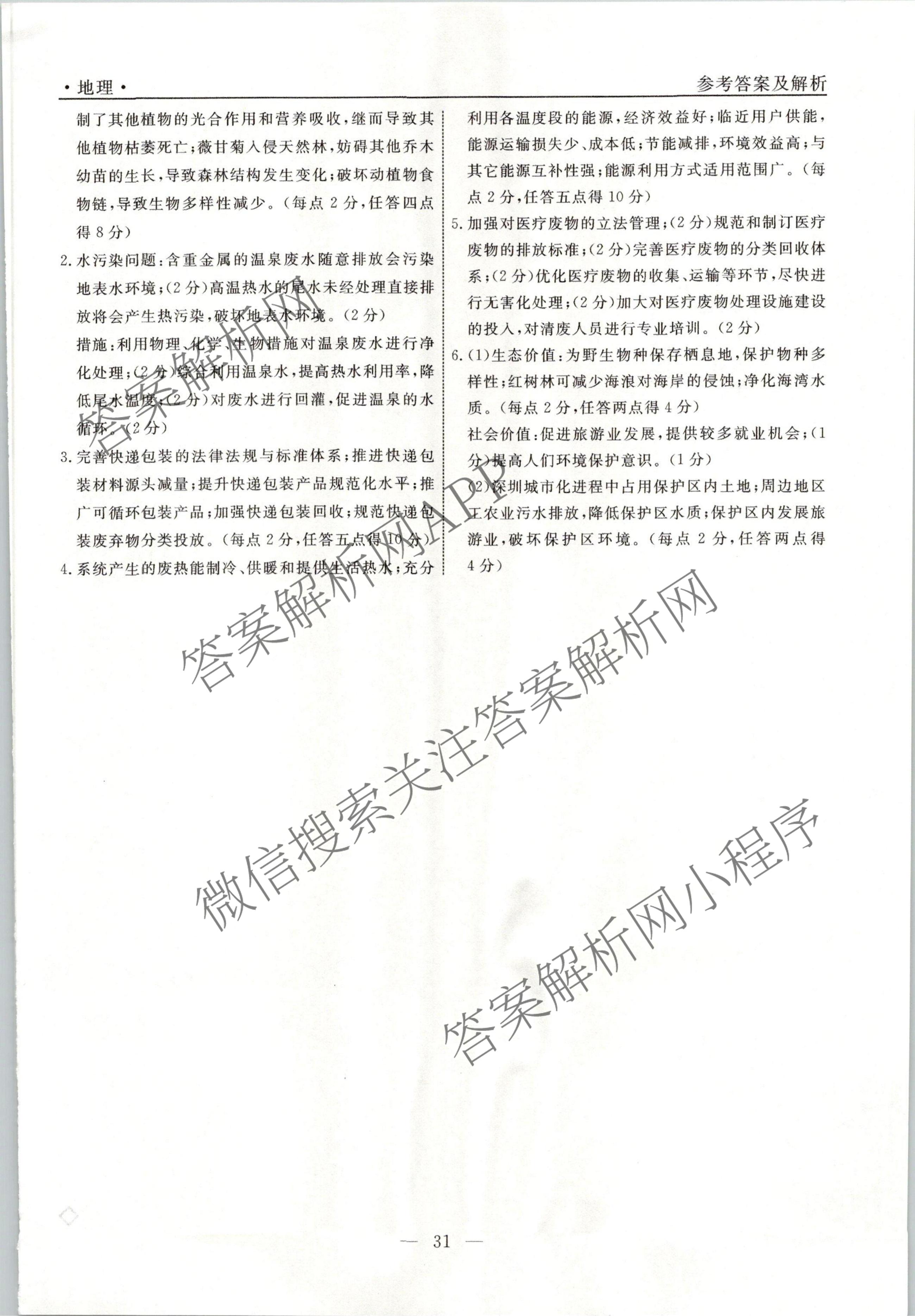 衡水名师卷2023-2024学年度高三一轮复习考点测试卷地理(40分钟空心菱形)(三十)30答案
