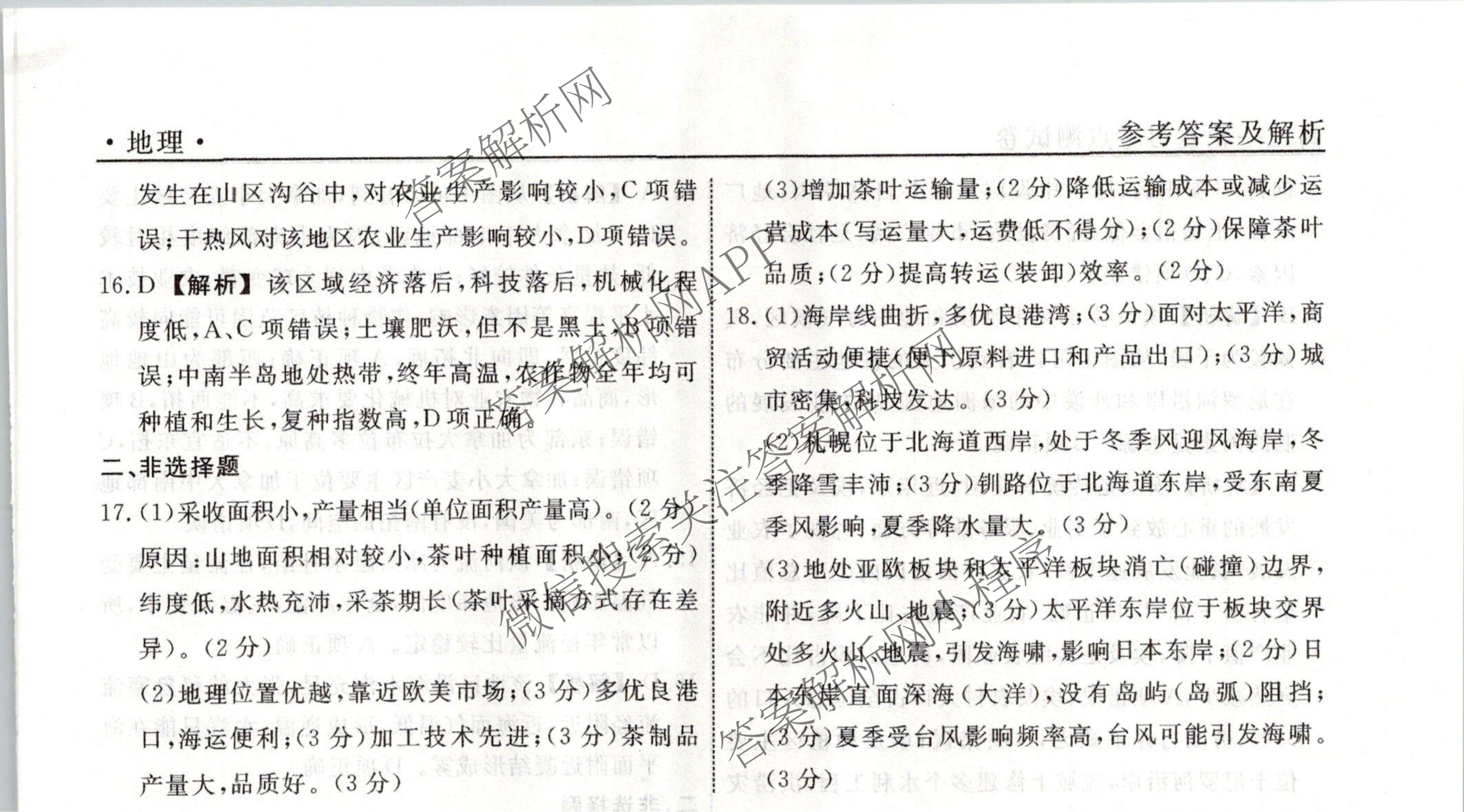 衡水名师卷2023-2024学年度高三一轮复习考点测试卷地理(40分钟空心菱形)(二十六)26答案