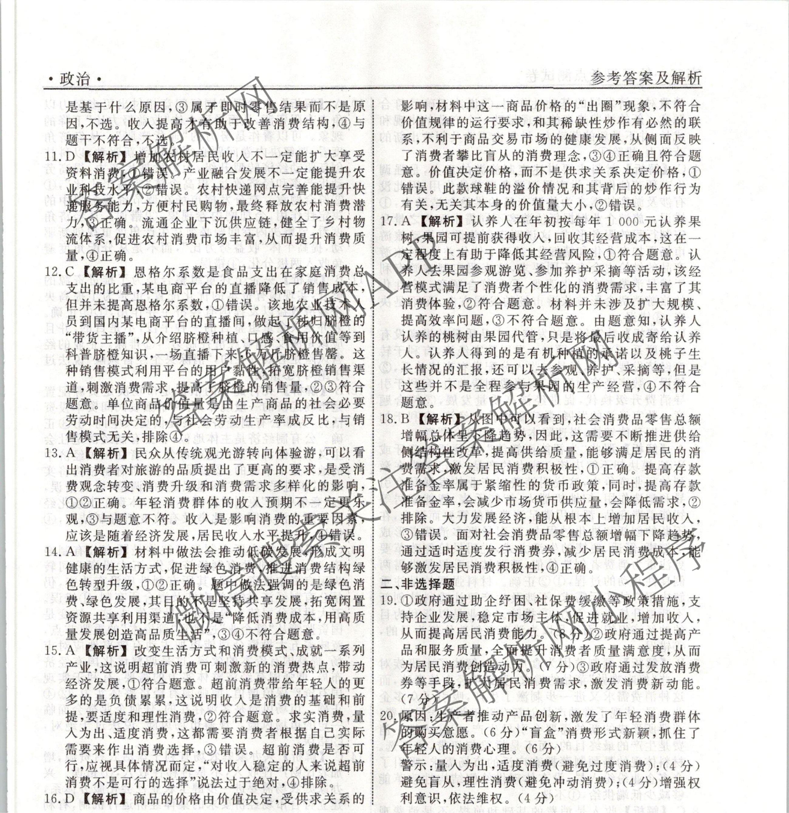 衡水名师卷2023-2024学年度高三一轮复习考点测试卷政治(40分钟空心菱形)(三)3答案