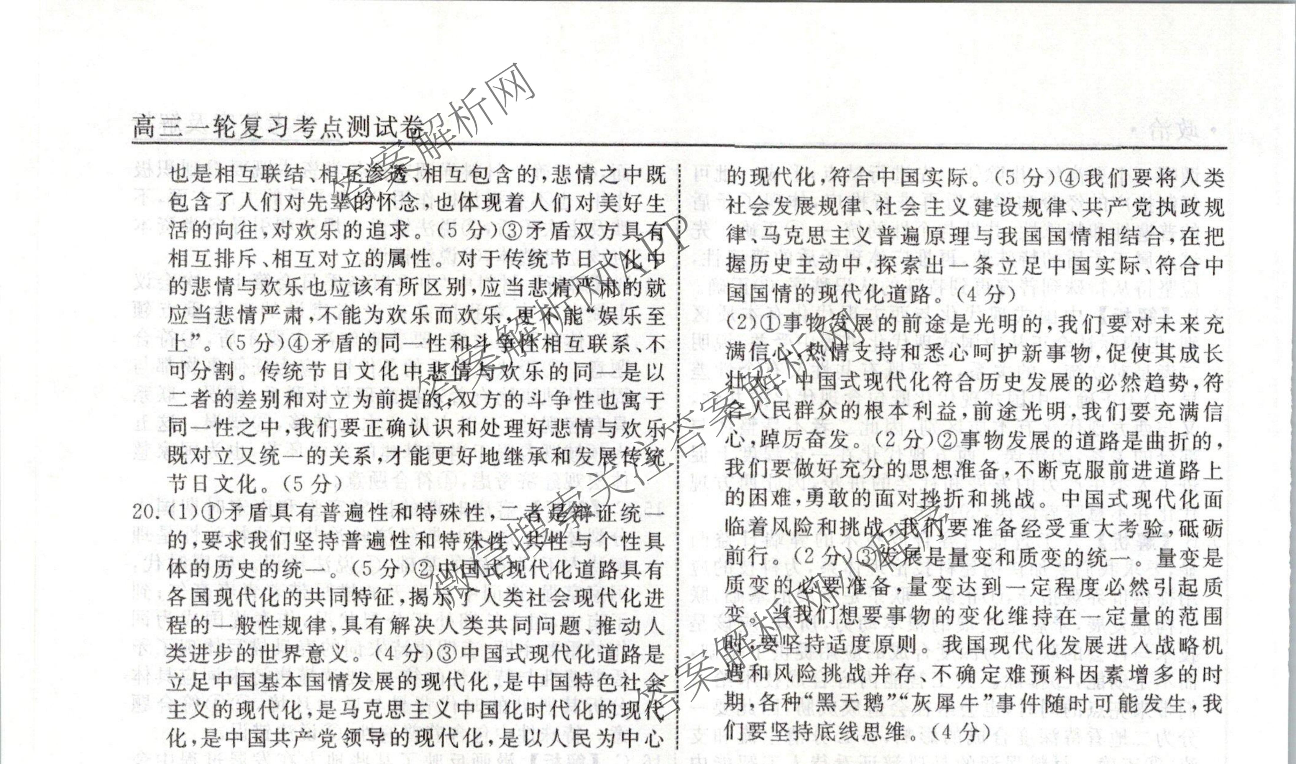 衡水名师卷2023-2024学年度高三一轮复习考点测试卷政治(40分钟空心菱形)(二十七)27答案
