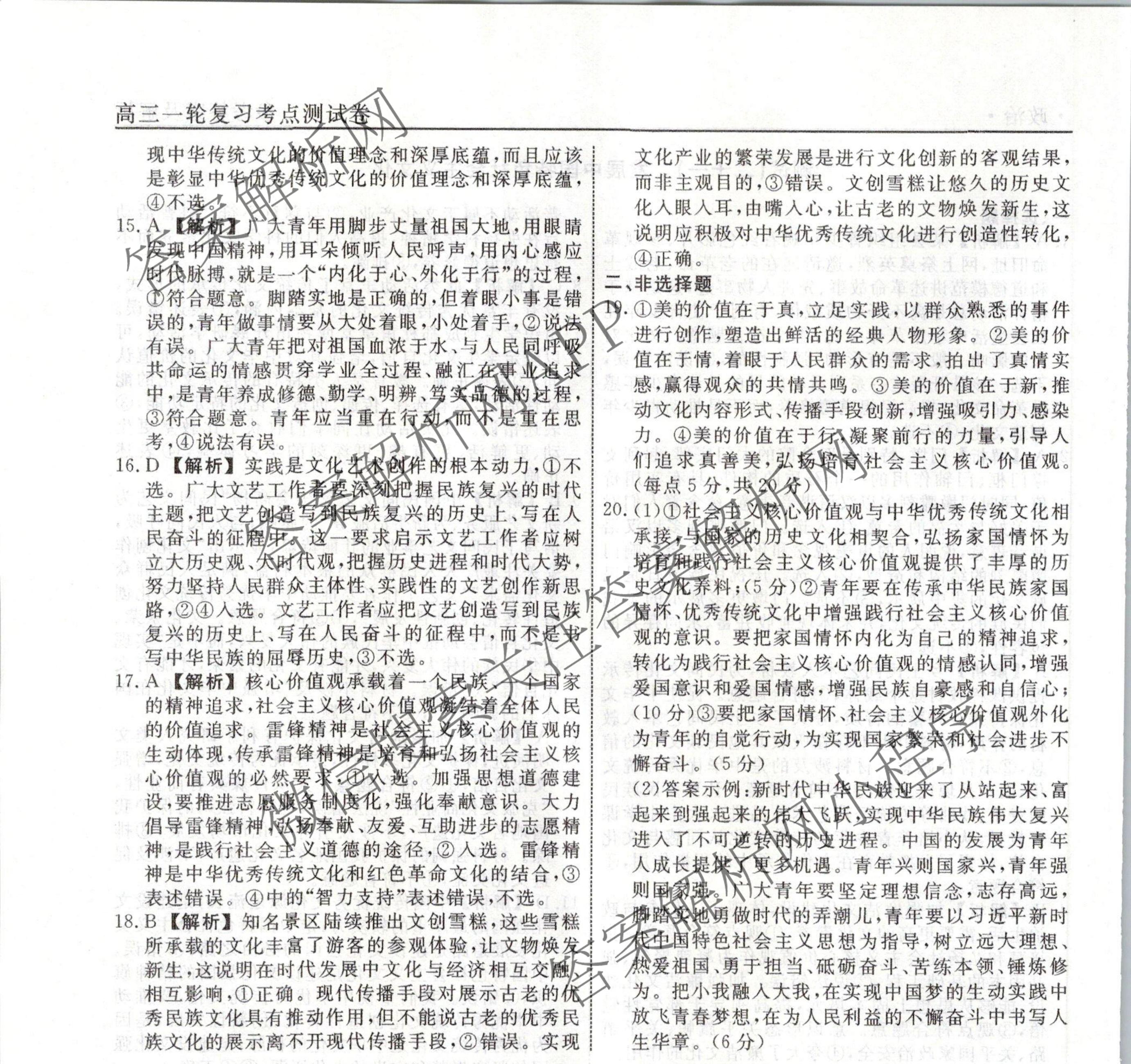 衡水名师卷2023-2024学年度高三一轮复习考点测试卷政治(40分钟空心菱形)(二十一)21答案