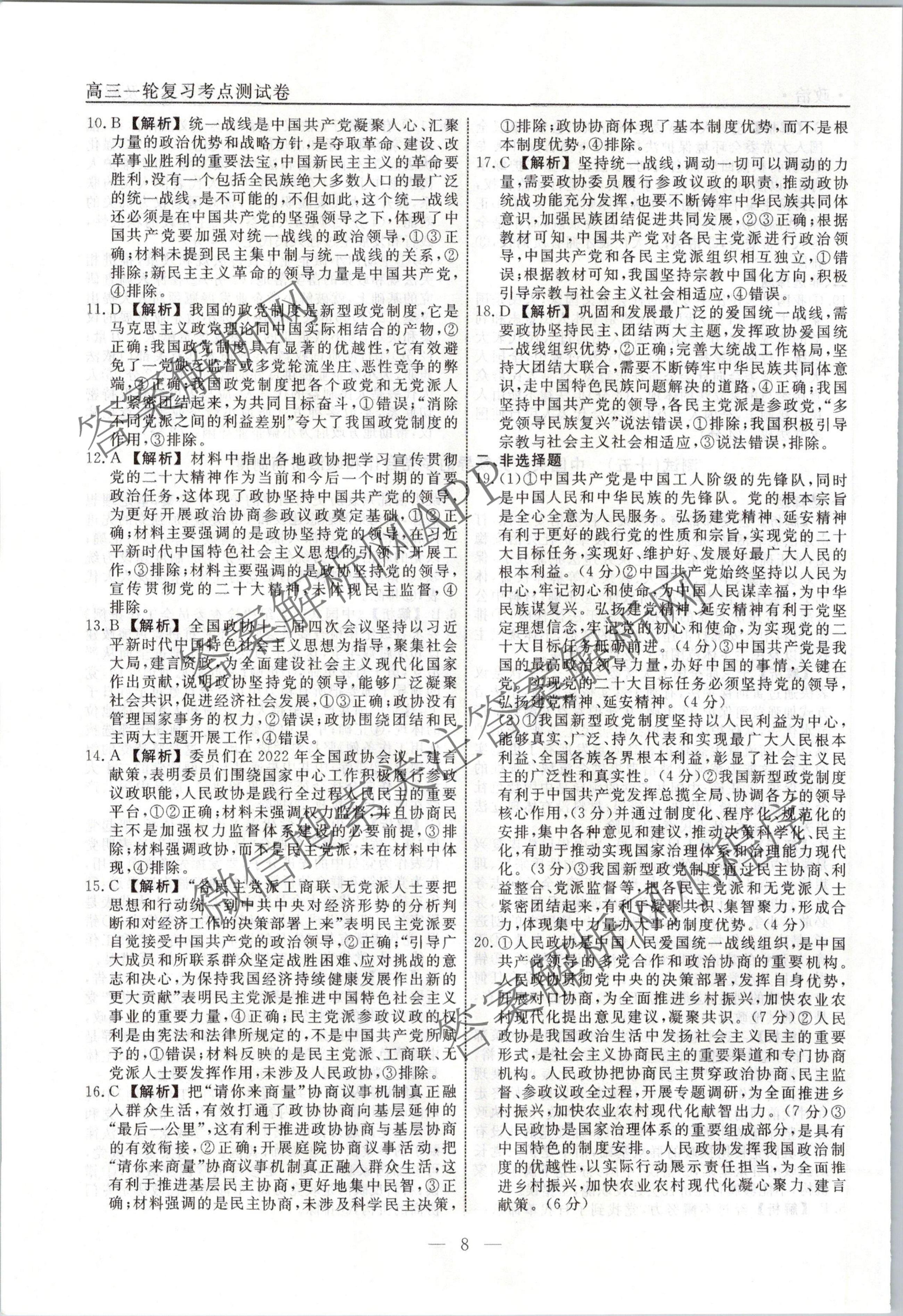 衡水名师卷2023-2024学年度高三一轮复习考点测试卷政治(40分钟空心菱形)(十五)15答案