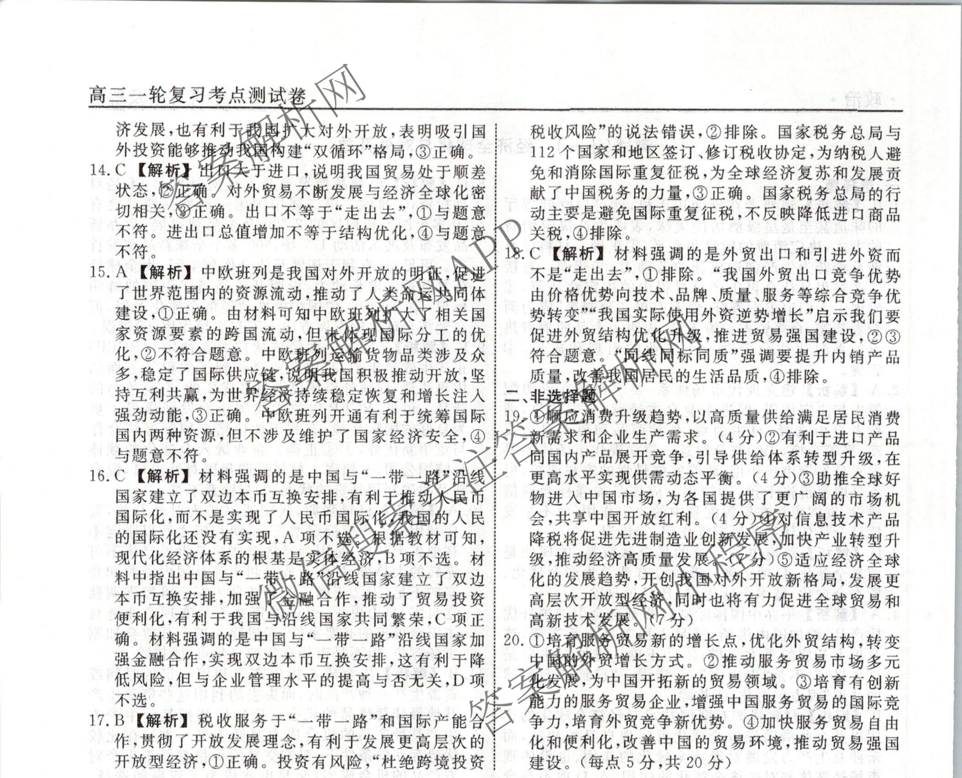 衡水名师卷2023-2024学年度高三一轮复习考点测试卷政治(40分钟空心菱形)(十一)11答案