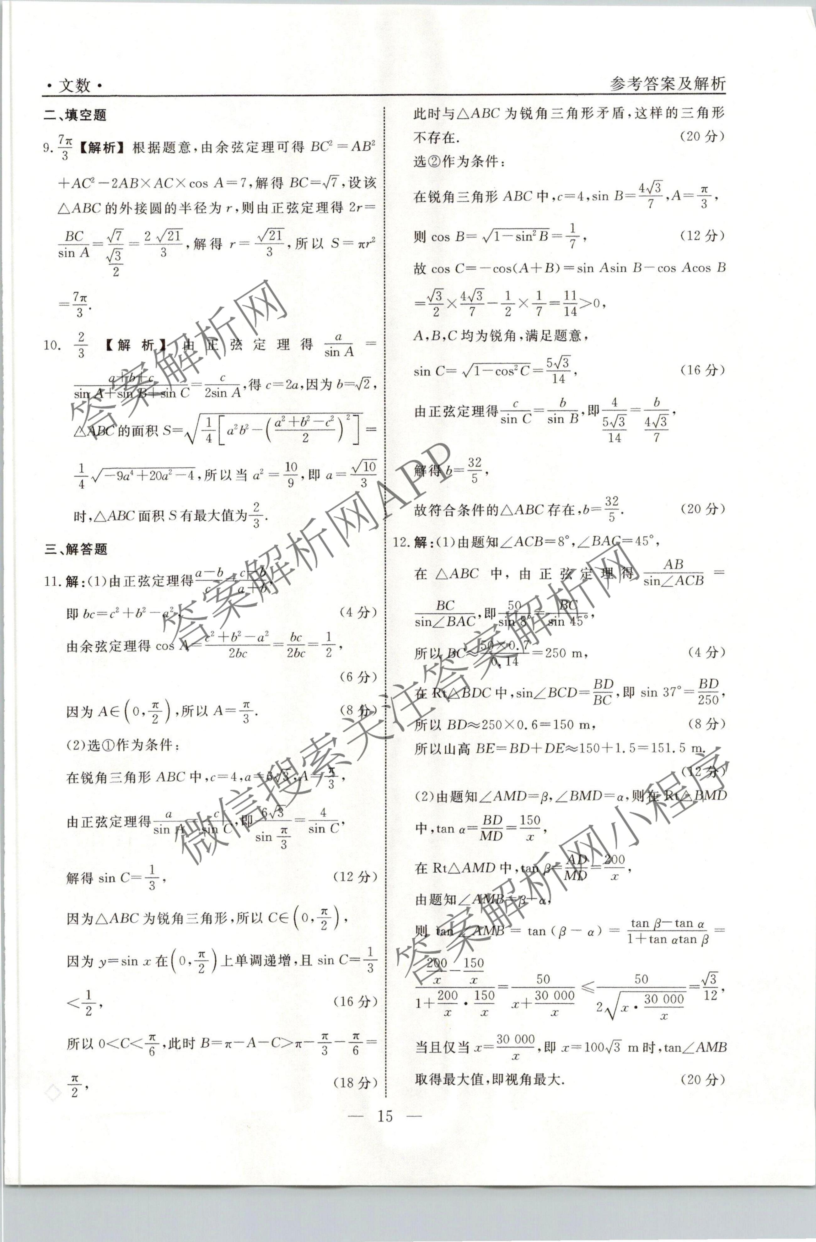 衡水名师卷2023-2024学年度高三一轮复习考点测试卷文数(40分钟空心菱形)(十)10答案