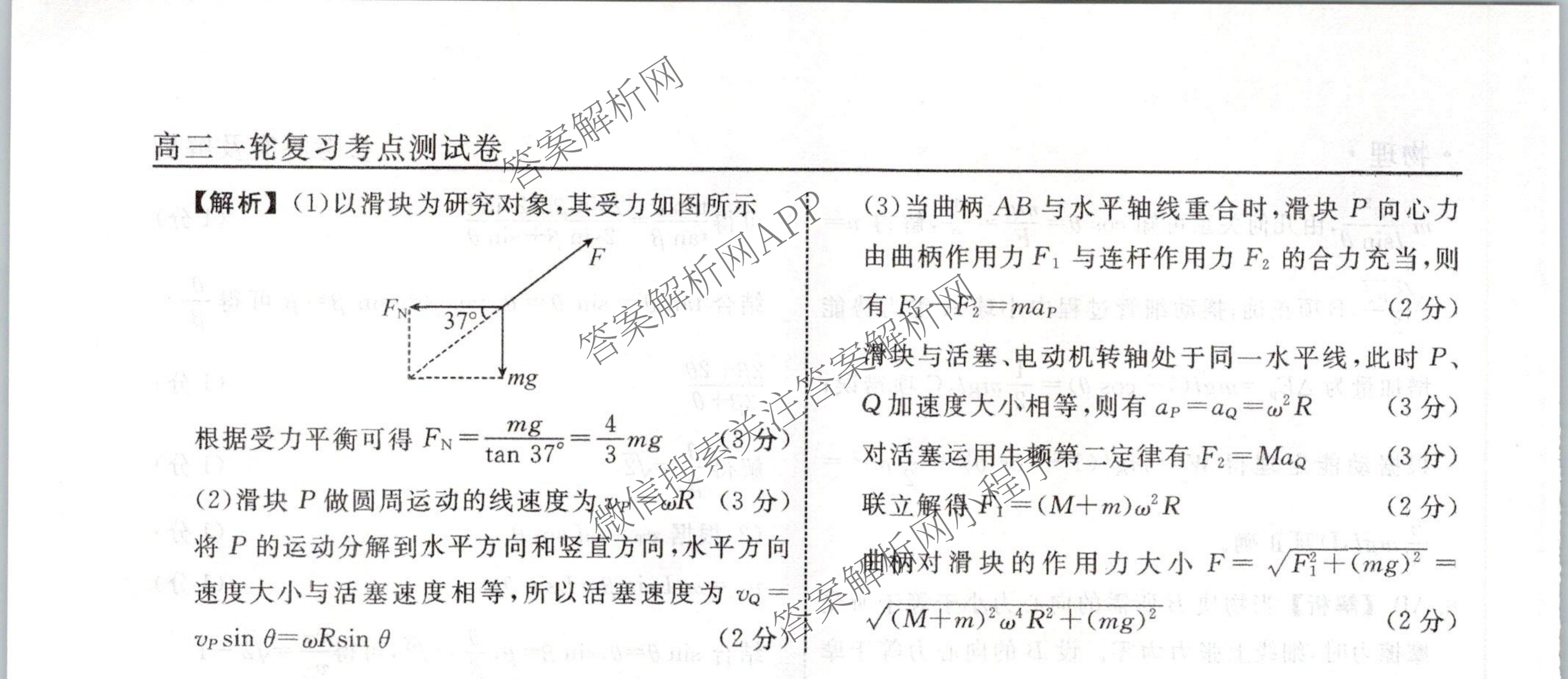 衡水名师卷2023-2024学年度高三一轮复习考点测试卷物理(40分钟空心菱形)(八)8答案
