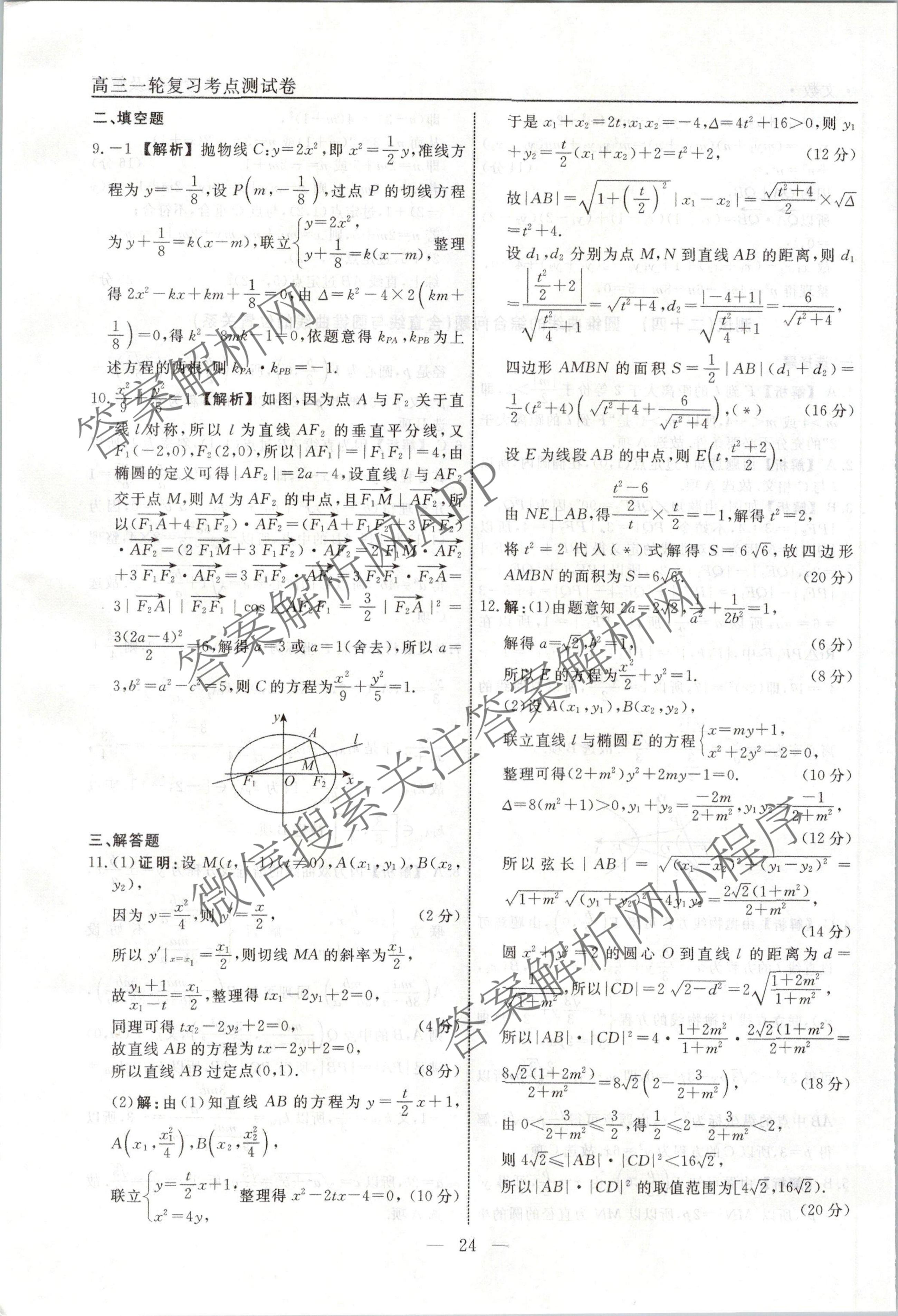 衡水名师卷2023-2024学年度高三一轮复习考点测试卷文数(40分钟空心菱形)(二十四)24答案