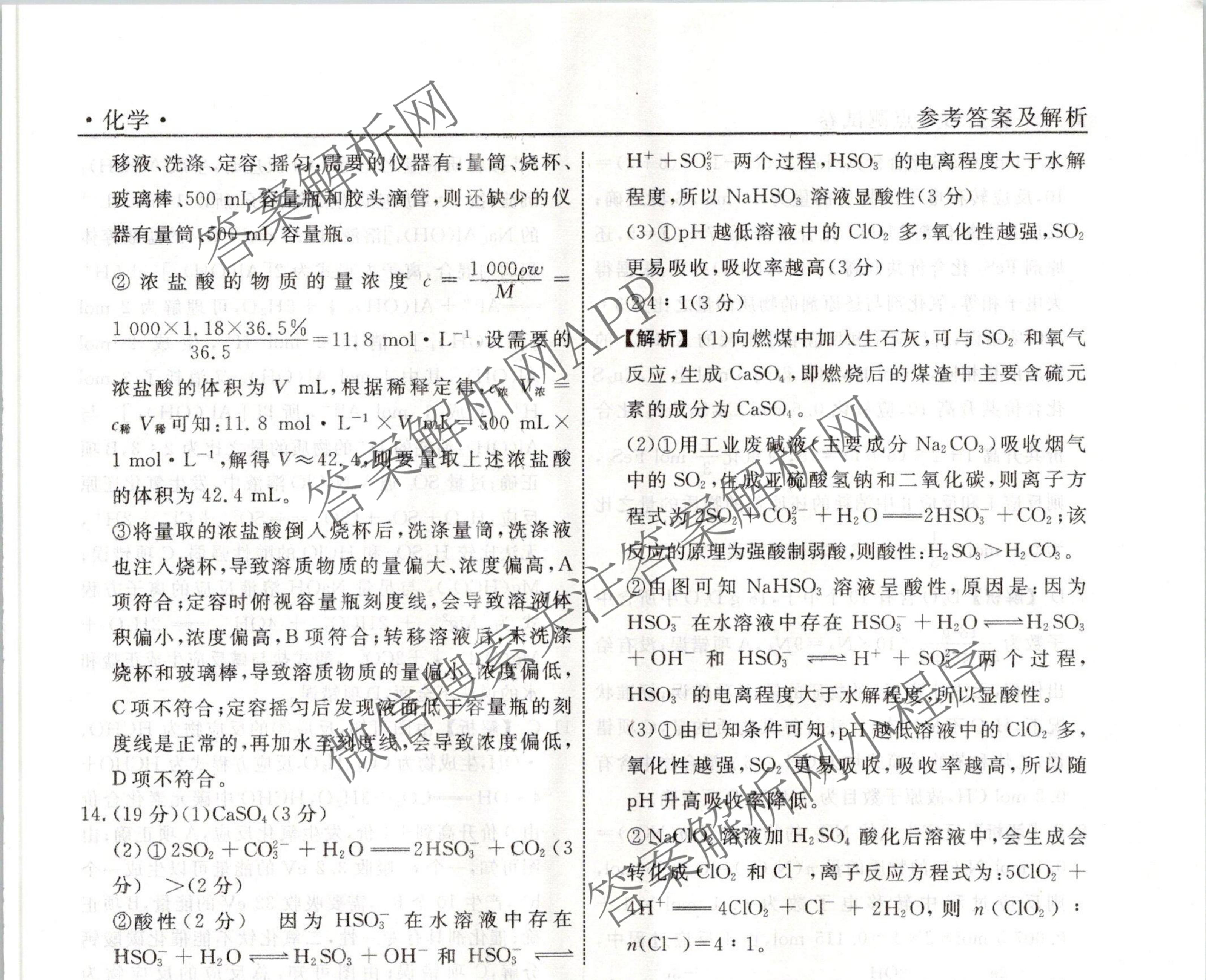 衡水名师卷2023-2024学年度高三一轮复习考点测试卷化学(40分钟空心菱形)(二)2答案