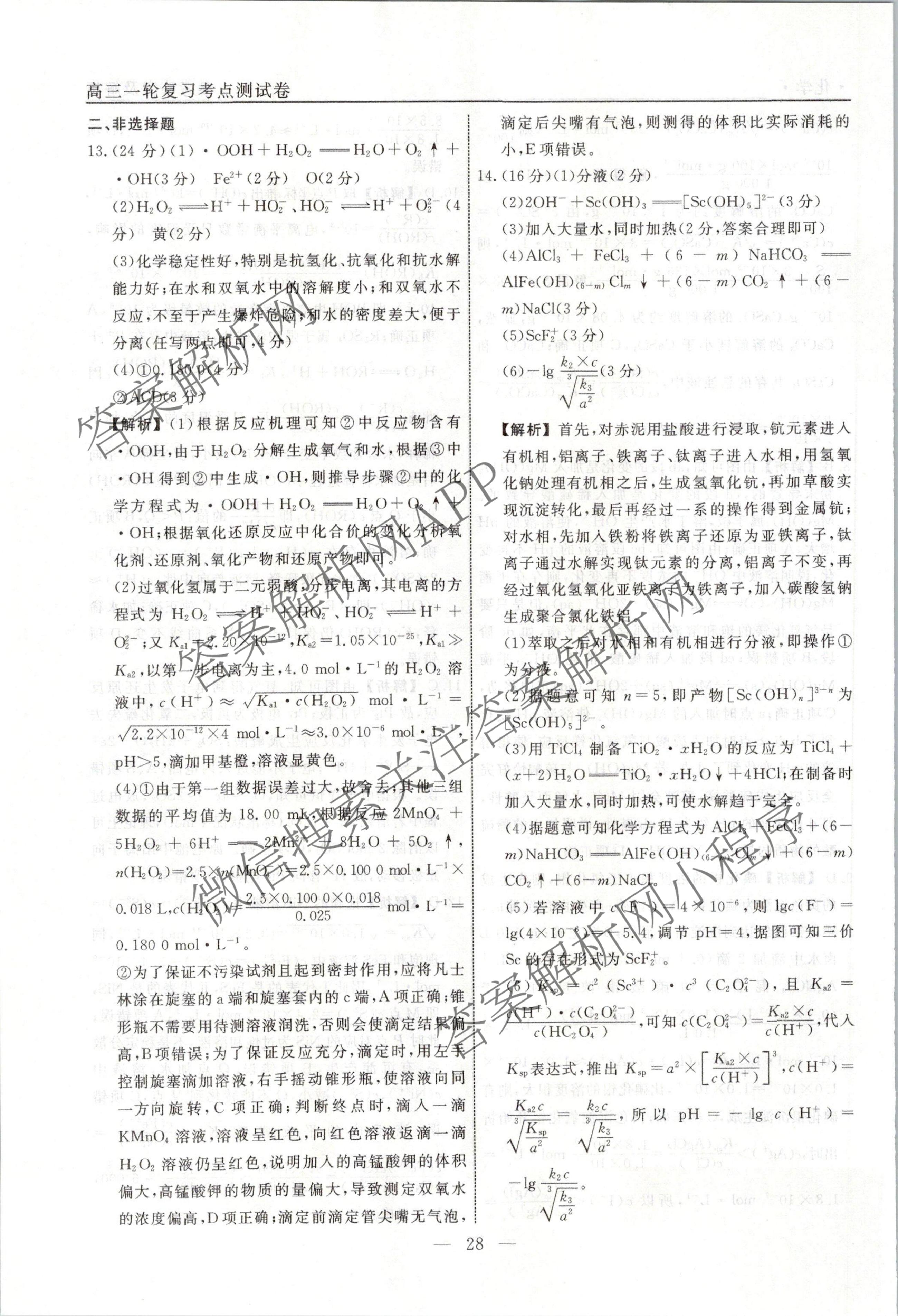 衡水名师卷2023-2024学年度高三一轮复习考点测试卷化学(40分钟空心菱形)(二十二)22答案