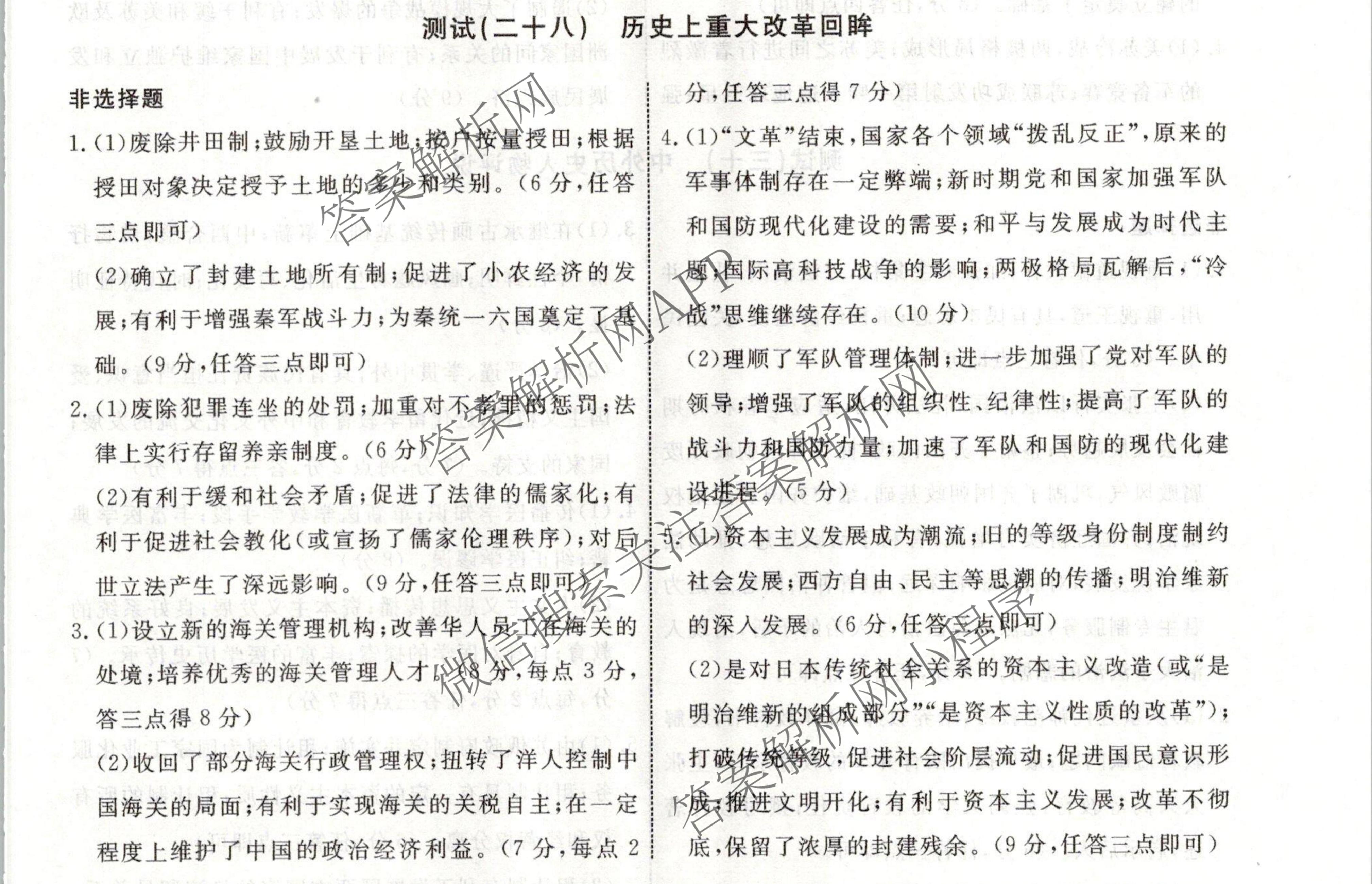 衡水名师卷2023-2024学年度高三一轮复习考点测试卷历史(40分钟同心圆)(二十八)28答案