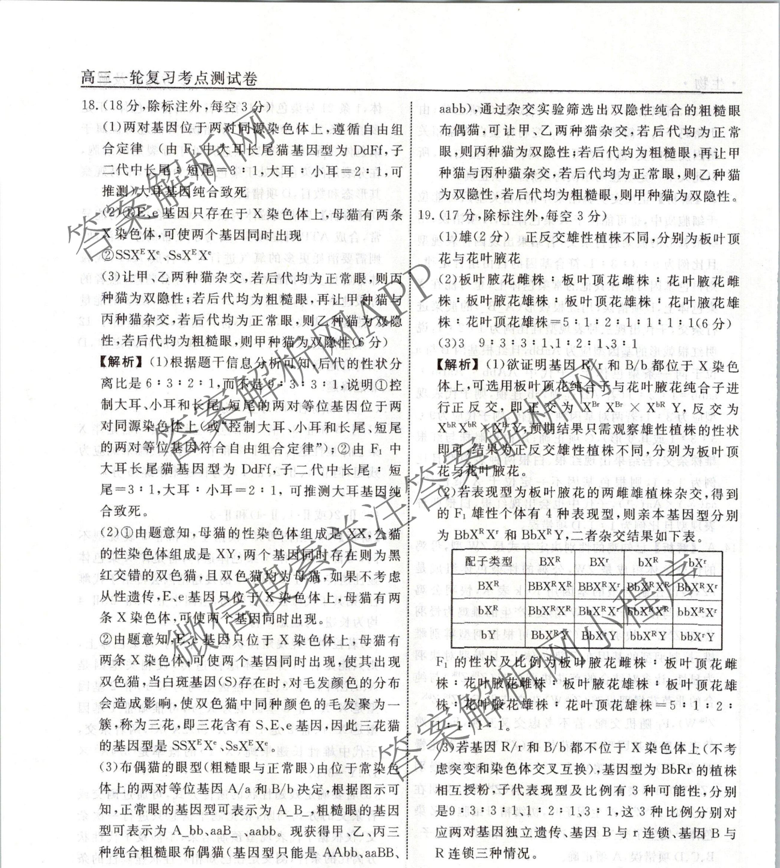 衡水名师卷2023-2024学年度高三一轮复习考点测试卷生物(40分钟空心菱形)(十一)11答案