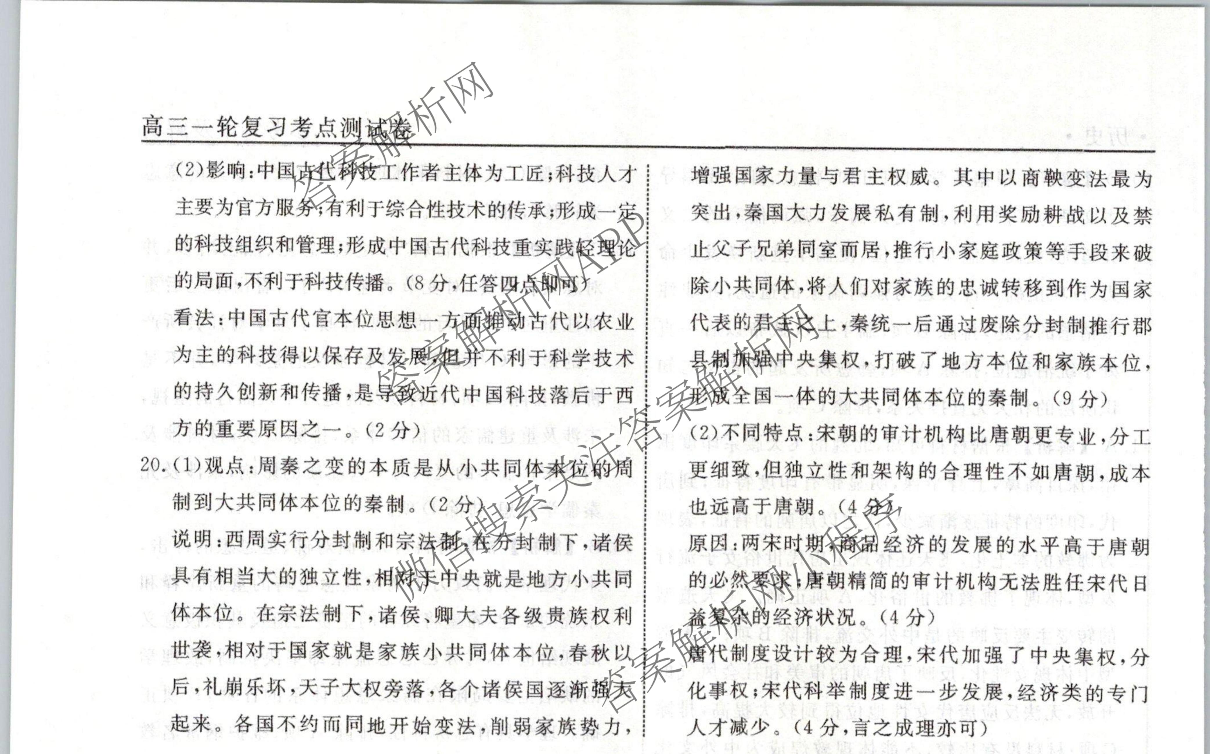 衡水名师卷2023-2024学年度高三一轮复习考点测试卷历史(40分钟同心圆)(五)5答案