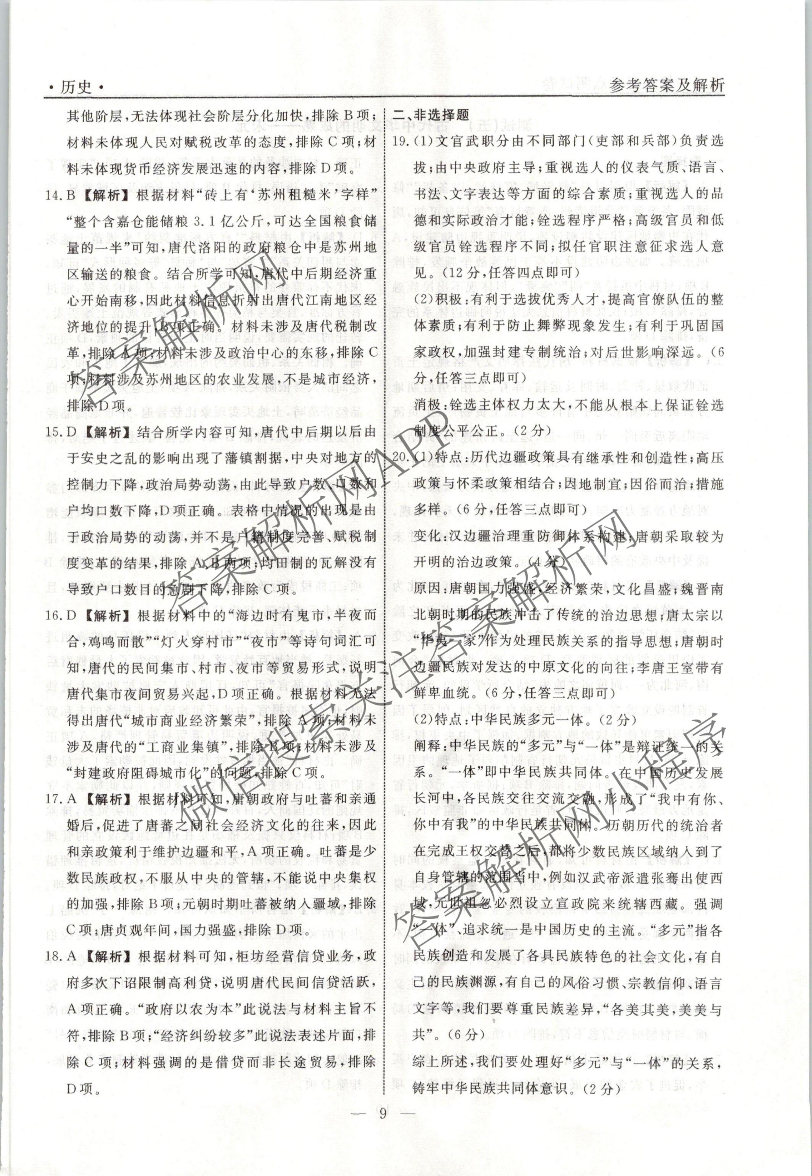衡水名师卷2023-2024学年度高三一轮复习考点测试卷历史(40分钟同心圆)(四)4答案