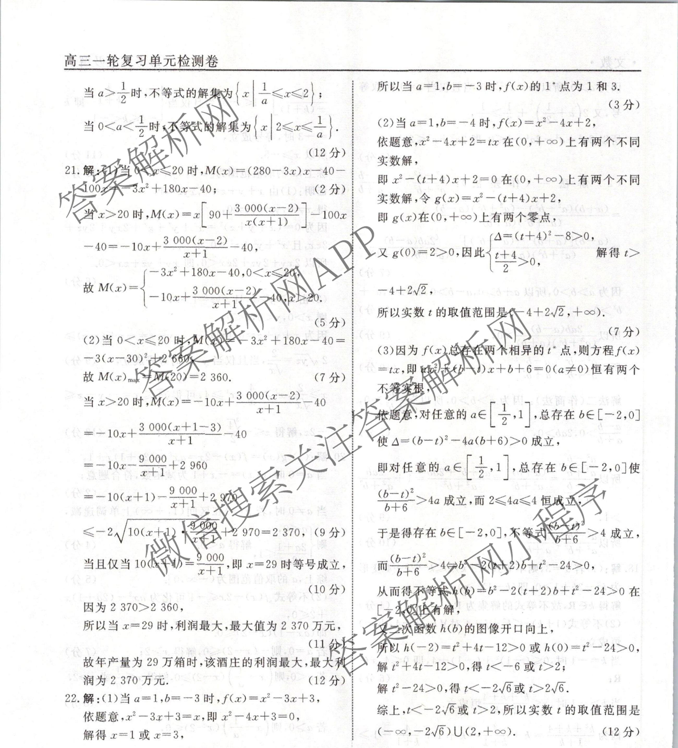 衡水名师卷2023-2024学年度高三一轮复习单元检测卷文数(空心菱形)检测(十一)11答案
