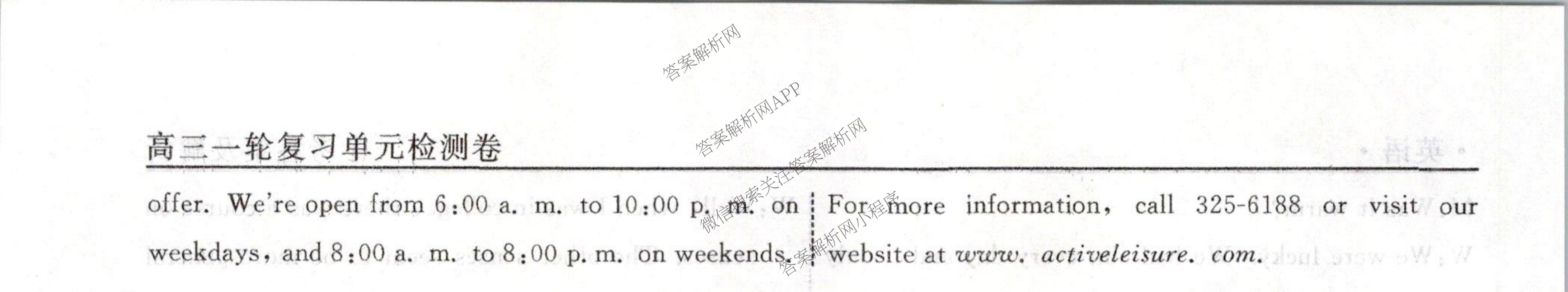 衡水名师卷·2023-2024学年度高三一轮复习单元检测卷·英语(空心菱形)检测(九)9答案,目前分科卷答案网已经汇总了衡水名师卷·2023-2024学年度高三一轮复习单元检测卷·英语(空心菱形)检测(九)9答案的各科答案和试卷,获取更多衡水名师卷答案解析,请在关注本站。