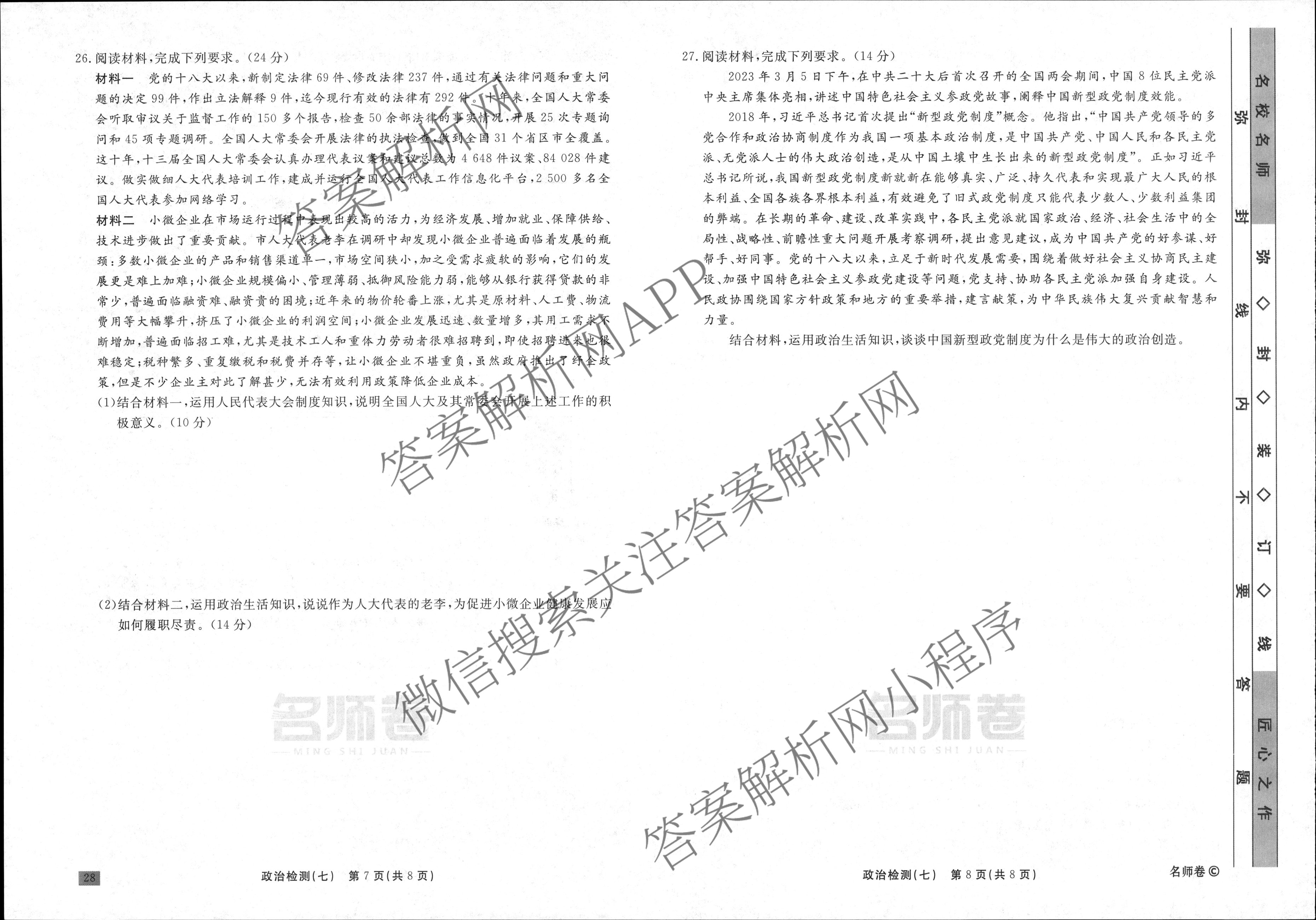 衡水名师卷·2023-2024学年度高三一轮复习单元检测卷·政治(空心菱形)检测(七)7试题,目前分科卷答案网已经汇总了衡水名师卷·2023-2024学年度高三一轮复习单元检测卷·政治(空心菱形)检测(七)7试题的各科答案和试卷,获取更多衡水名师卷答案解析,请在关注本站。