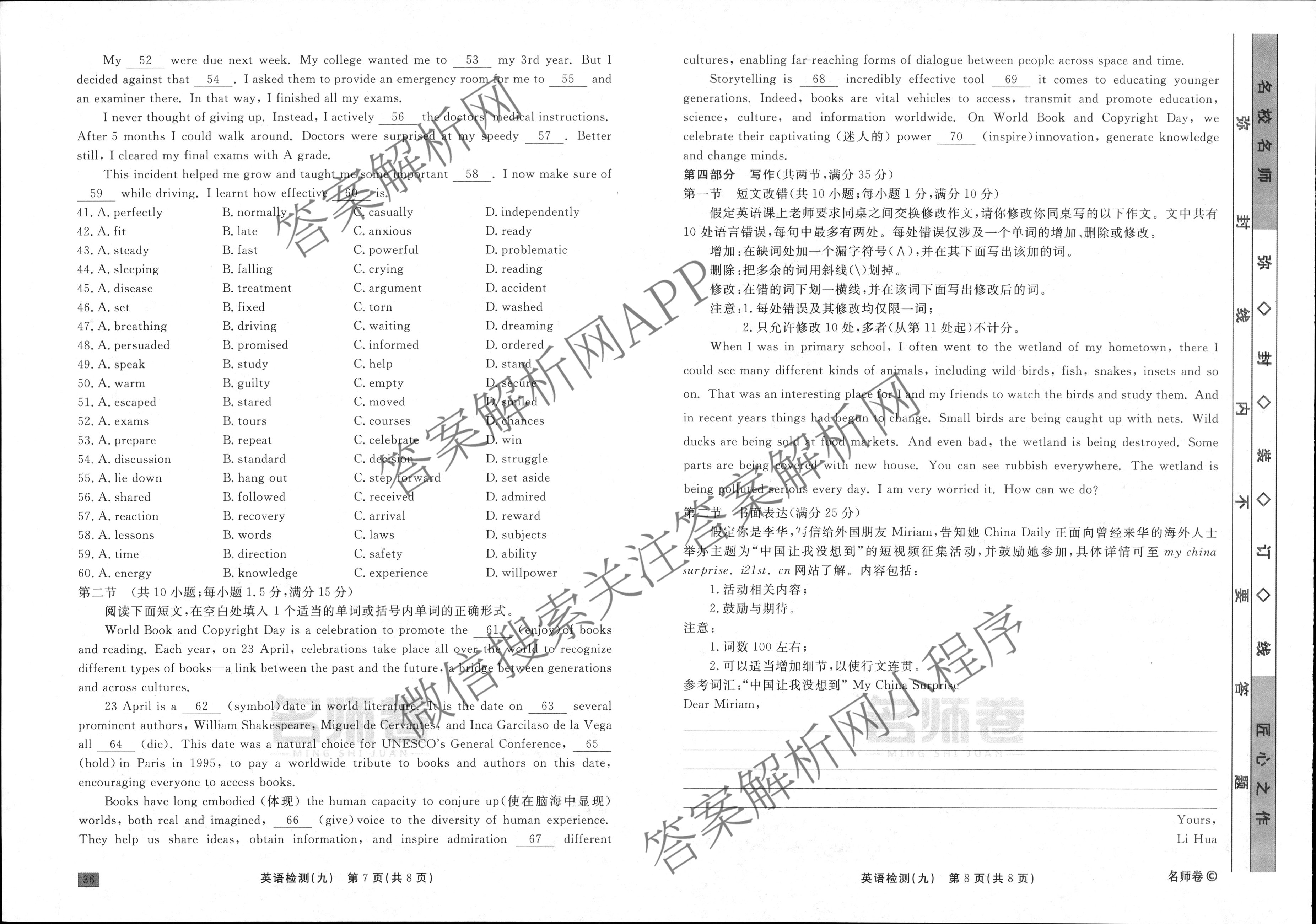 衡水名师卷·2023-2024学年度高三一轮复习单元检测卷·英语(空心菱形)检测(九)9试题,目前分科卷答案网已经汇总了衡水名师卷·2023-2024学年度高三一轮复习单元检测卷·英语(空心菱形)检测(九)9试题的各科答案和试卷,获取更多衡水名师卷答案解析,请在关注本站。