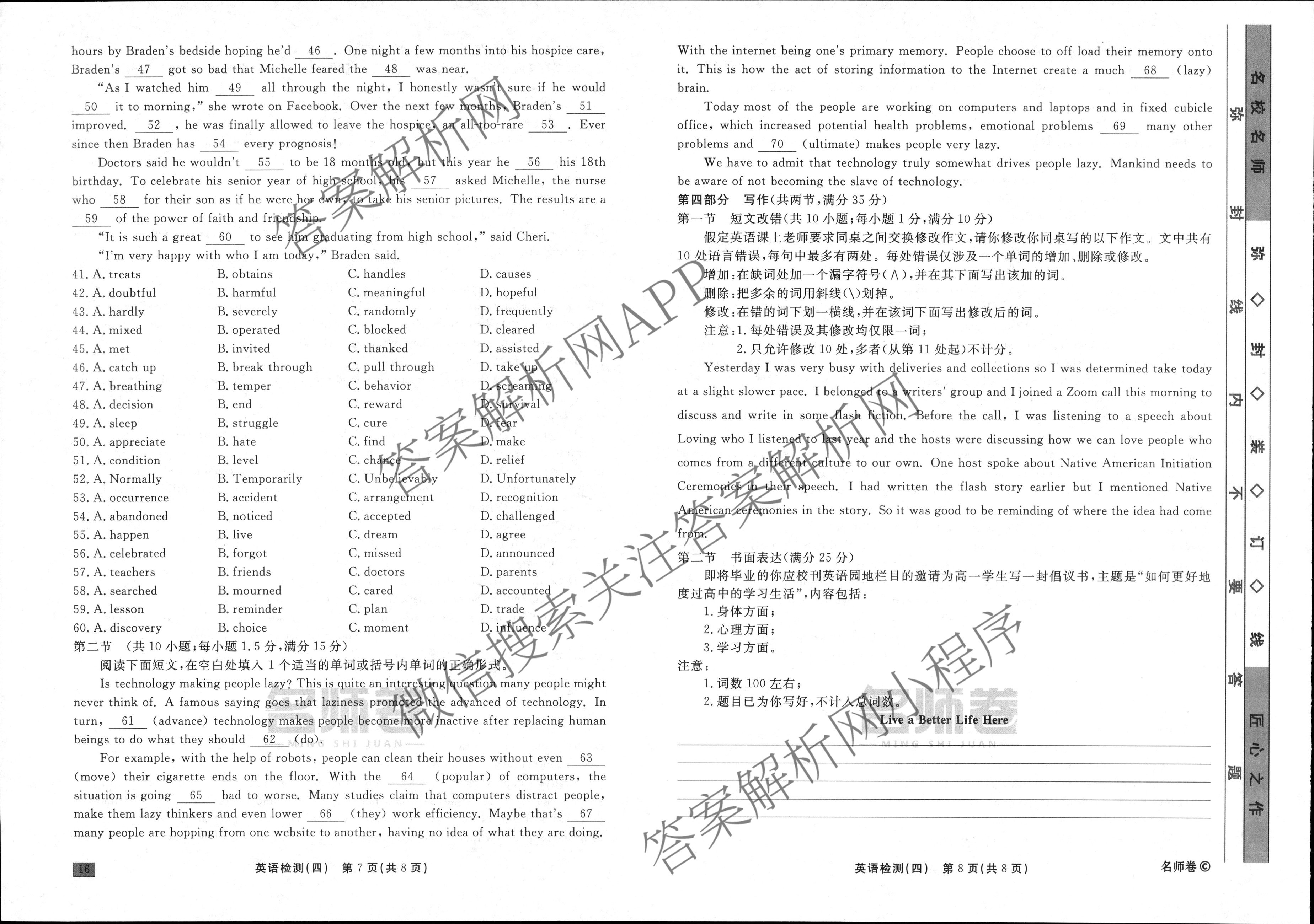 衡水名师卷·2023-2024学年度高三一轮复习单元检测卷·英语(空心菱形)检测(四)4试题,目前分科卷答案网已经汇总了衡水名师卷·2023-2024学年度高三一轮复习单元检测卷·英语(空心菱形)检测(四)4试题的各科答案和试卷,获取更多衡水名师卷答案解析,请在关注本站。